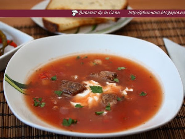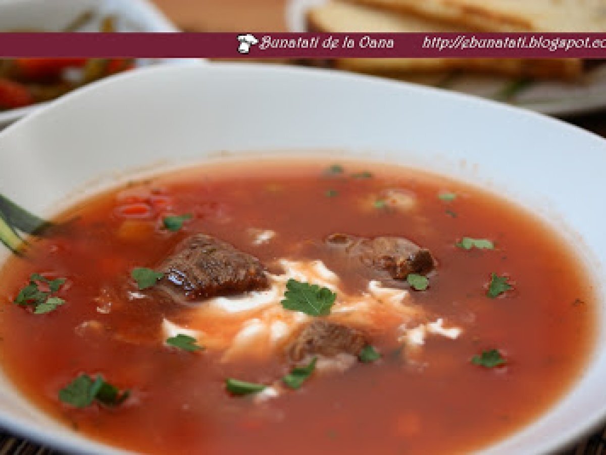 Ciorba taraneasca de vacuta PrecedentulUrmătorul Felul principalFoarte ușor45 min Trimite unui prieten Printează pagina Adresează o întrebare autorului Postează o poză cu rețeta gătită de tine Ingrediente 4 o ceapa mare un cartof mediu un morcov mare un pastarnac sau radacina de patrunjel o telina medie un pumn de mazare, obligatoriu! jumatate de ardei rosu, jumatate de dovlecel mic, un pumn de pastai de fasole verde o bucatica de praz de 3-4 degete (optional) cateva buchetele de conopida (optional) Bulion - 3-4 linguri Bors- circa 500 ml Verdeata : patrunjel si leustean