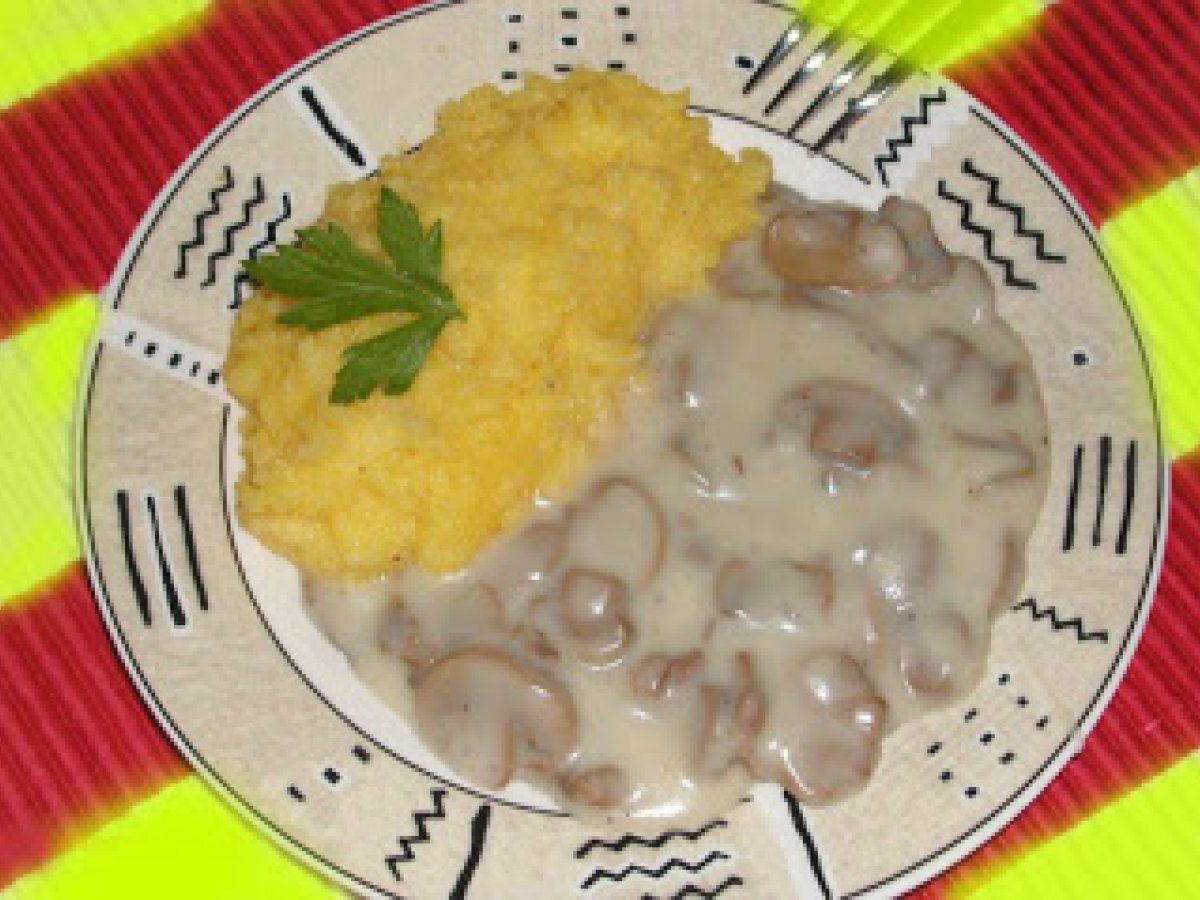 - Faina se freaca cu o lingura de apa rece desertindu-se peste ciuperci cu care se amesteca, lasind sa fiarba citeva clocote ca sa se lege putin sosul, apoi cratita se ia de pe foc.