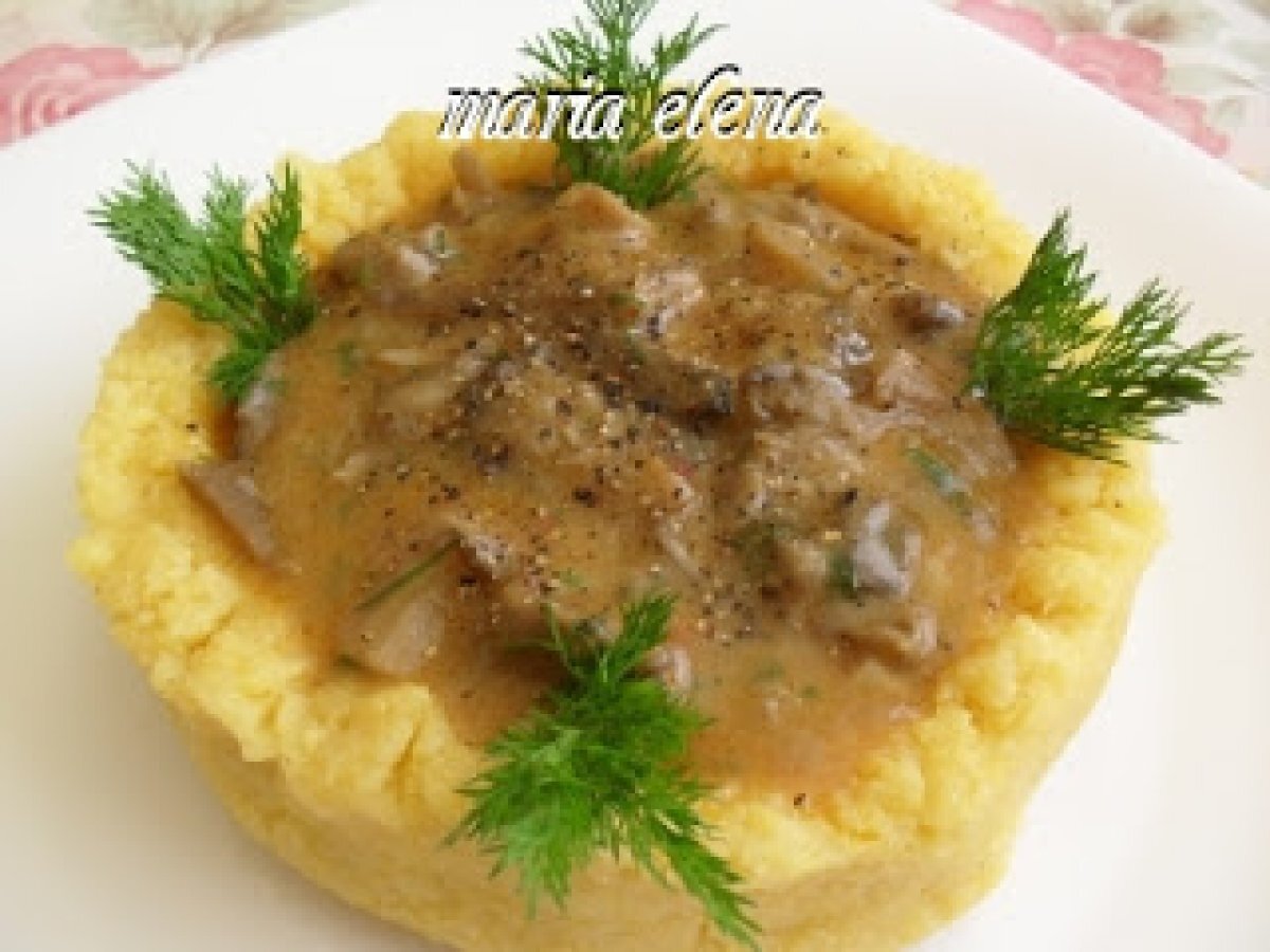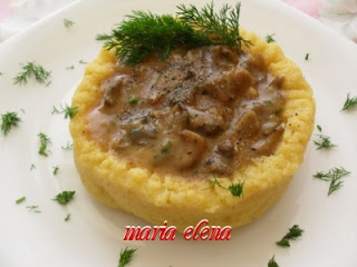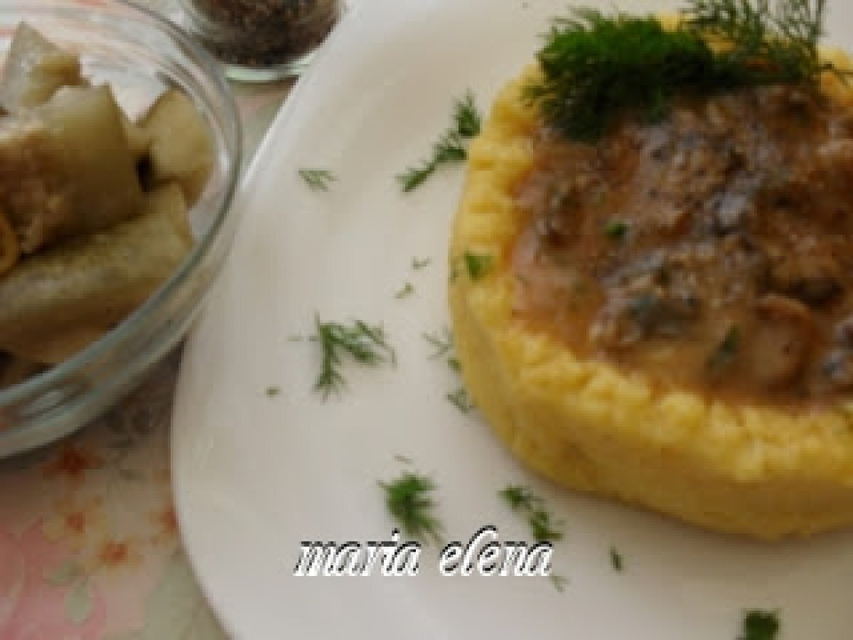 Ciupeci pleurotus in blid de mamaliga PrecedentulUrmătorul Felul principalFoarte ușor42 min Trimite unui prieten Printează pagina Adresează o întrebare autorului Postează o poză cu rețeta gătită de tine Ingrediente 4 1/2 kg ciuperci Pleurotus, 50-60 ml ulei, 2 lingurite boia rosie, 1 ceapa alba mica, sare, 1 lingurita vegeta, 1-2 lingurite condiment pt carne de porc, 2-3 crengute patrunjel verde, cateva crengute marar verde, 2 catei usturoi, 1 lingura faina alba. Pt mamaliga: faina de porumb grisata, sare, apa.