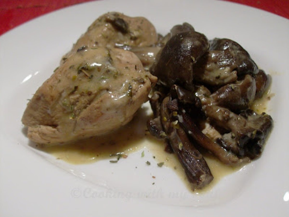 Ciuperci de padure cu pui si sos de smantana Felul principalFoarte ușor35 min Trimite unui prieten Printează pagina Adresează o întrebare autorului Postează o poză cu rețeta gătită de tine Ingrediente 4 3 jumatati de piept de pui, fiecare taiata in 3 1 kg de ciuperci 1 capatana de usturoi, zdrobit 300 ml smantana 3 linguri de ulei de masline 1/2 pahar de apa sare, piper dupa gust optional: ierburi provensale