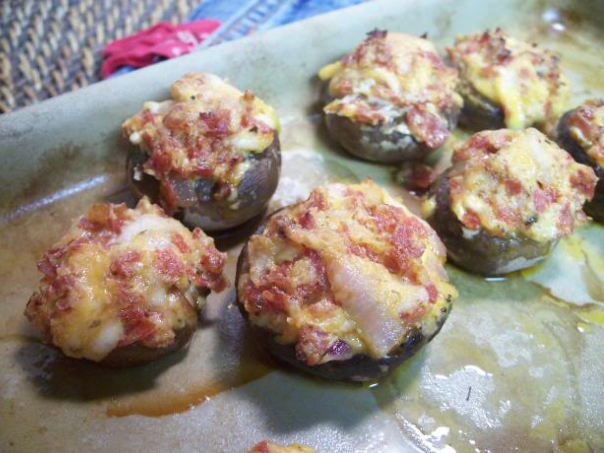 Ciuperci umplute cu sunca la cuptor Felul principalFoarte ușor40 min Trimite unui prieten Printează pagina Adresează o întrebare autorului Postează o poză cu rețeta gătită de tine Ingrediente 4 2 linguri de unt 1 ceapa fin tocata 2 catei de usturoi maruntit 1 ardei rosu 200 g sunca 200 g branza mozzarella rasa(sau cascaval) 3 linguri de pasta de tomate 1 lingurita patrunjel sau oregano 400 g ciuperci intregi sare