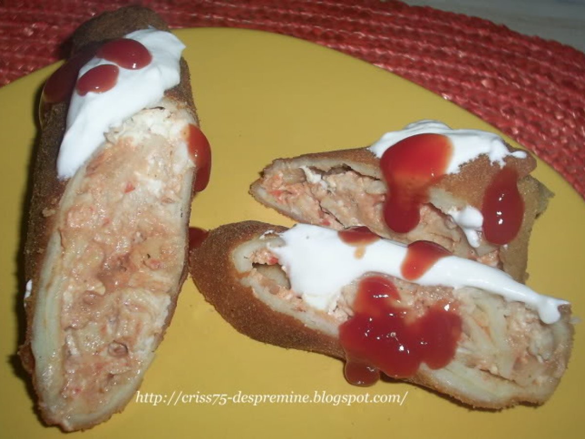 Clatite brasovene PrecedentulUrmătorul Felul principalFoarte ușor35 min Trimite unui prieten Printează pagina Adresează o întrebare autorului Postează o poză cu rețeta gătită de tine Ingrediente 4 1 piept de pui 1 ceapa 3 bucati usturoi 300 g branza feta sare,piper 2 linguri pasta de rosii 10 bucati clatite smantana- ketchup
