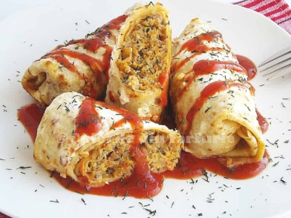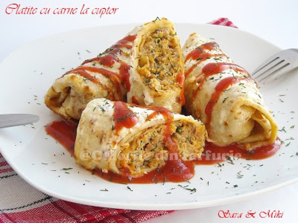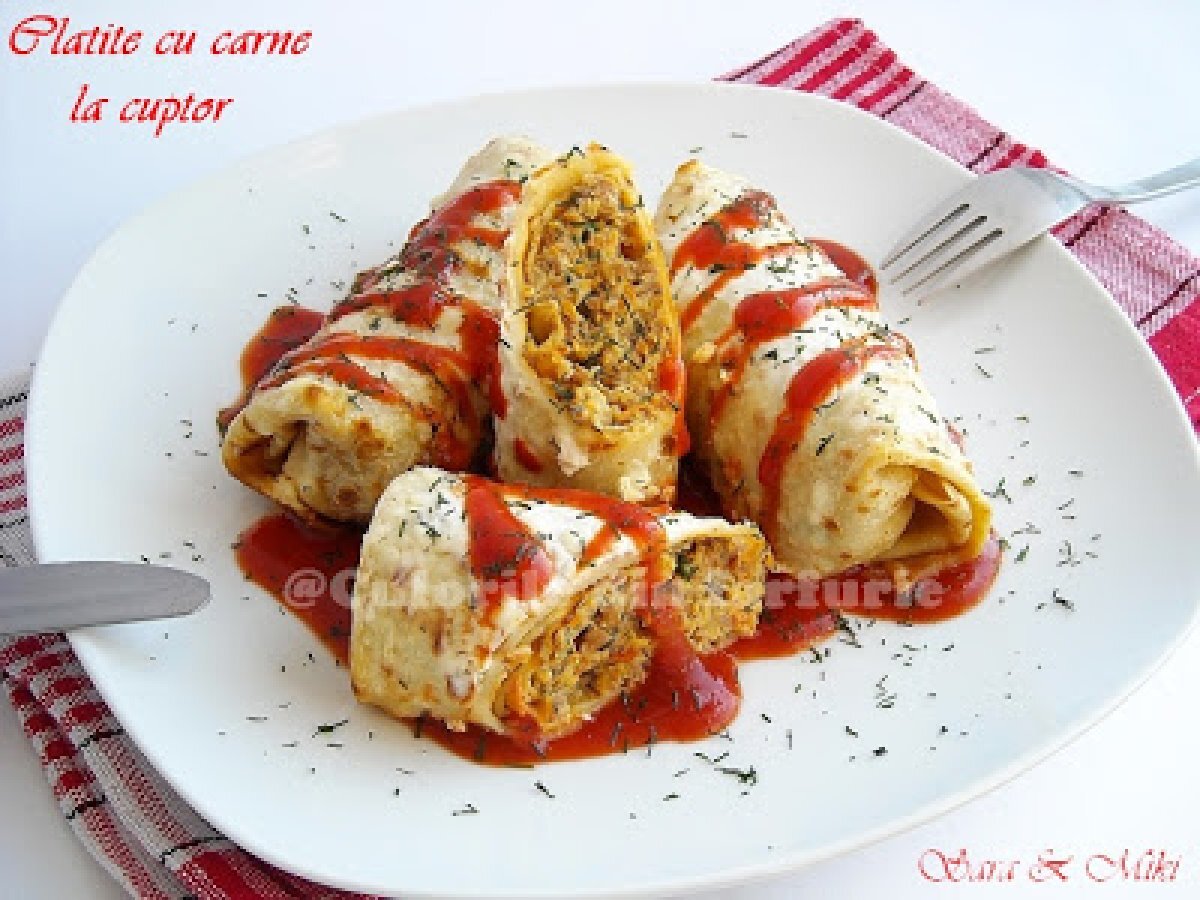 Clatite cu carne la cuptor PrecedentulUrmătorul Felul principalFoarte ușor30 min Trimite unui prieten Printează pagina Adresează o întrebare autorului Postează o poză cu rețeta gătită de tine Ingrediente 4 300 g carne tocata 1 ceapa 1 morcov mic ras verdeata tocata sare piper boia cimbru clatite: 2 oua 200 g faina 2 linguri de unt varf de lingurita de sare 1 lingurita rasa de bicarbona 200 ml lapte 100 ml apa minerala