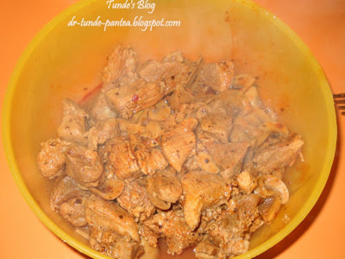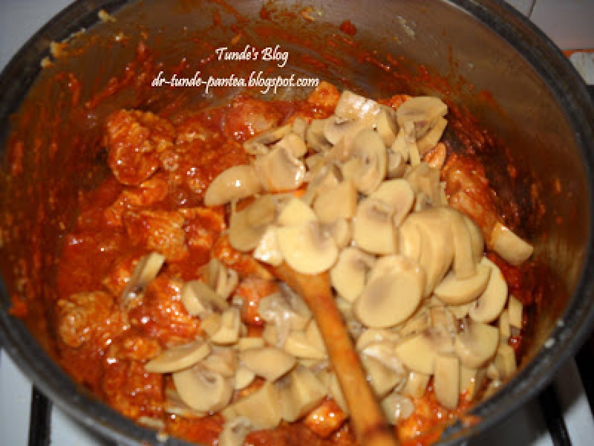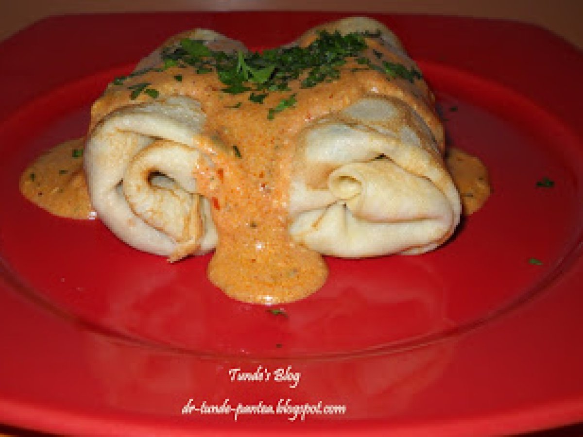 Clatite hortobagy cu carne si ciuperci PrecedentulUrmătorul Felul principalFoarte ușor50 min Trimite unui prieten Printează pagina Adresează o întrebare autorului Postează o poză cu rețeta gătită de tine Ingrediente 4 Pt aluat: 300 g de faina 3 oua 200 ml lapte apa minerala (ochiometric) sare o lingura de ulei Pt umplutura: 800 g de carne pui sau porc o cutie de ciuperci o ceapa mare 3 linguri de boia doi catei de usturoi 150 ml de suc de rosii sare, piper maghiran, cimbru, ghimbir macinat frunze de patrunjel verde proaspat Pt sos: zeama de la tocanita ... 250 ml smantana 3 linguri de faina un tub de branza topita sau cascaval ras in jur de 150 g patrunjel proaspat