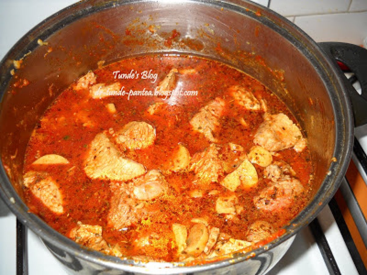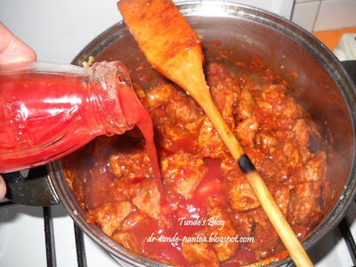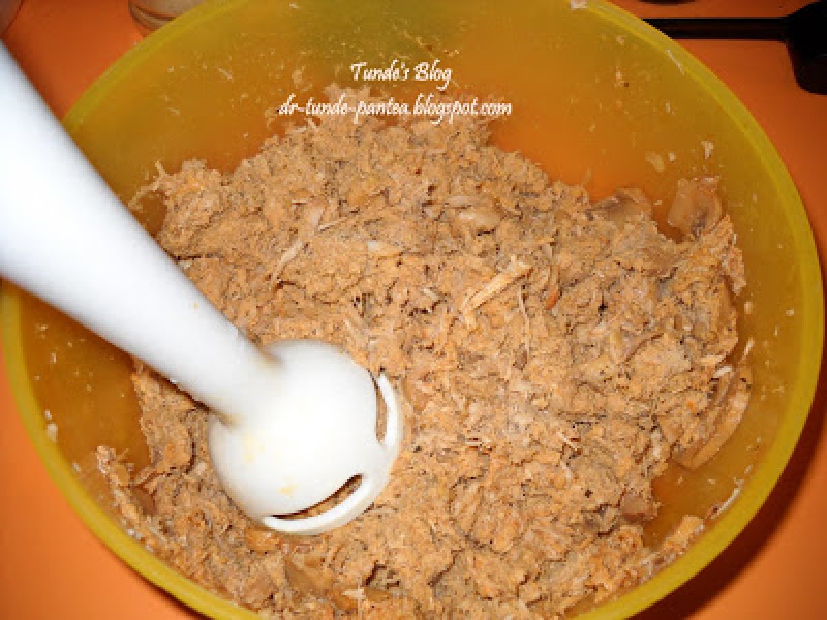 Clatite hortobagy cu carne si ciuperci PrecedentulUrmătorul Felul principalFoarte ușor50 min Trimite unui prieten Printează pagina Adresează o întrebare autorului Postează o poză cu rețeta gătită de tine Ingrediente 4 Pt aluat: 300 g de faina 3 oua 200 ml lapte apa minerala (ochiometric) sare o lingura de ulei Pt umplutura: 800 g de carne pui sau porc o cutie de ciuperci o ceapa mare 3 linguri de boia doi catei de usturoi 150 ml de suc de rosii sare, piper maghiran, cimbru, ghimbir macinat frunze de patrunjel verde proaspat Pt sos: zeama de la tocanita ... 250 ml smantana 3 linguri de faina un tub de branza topita sau cascaval ras in jur de 150 g patrunjel proaspat