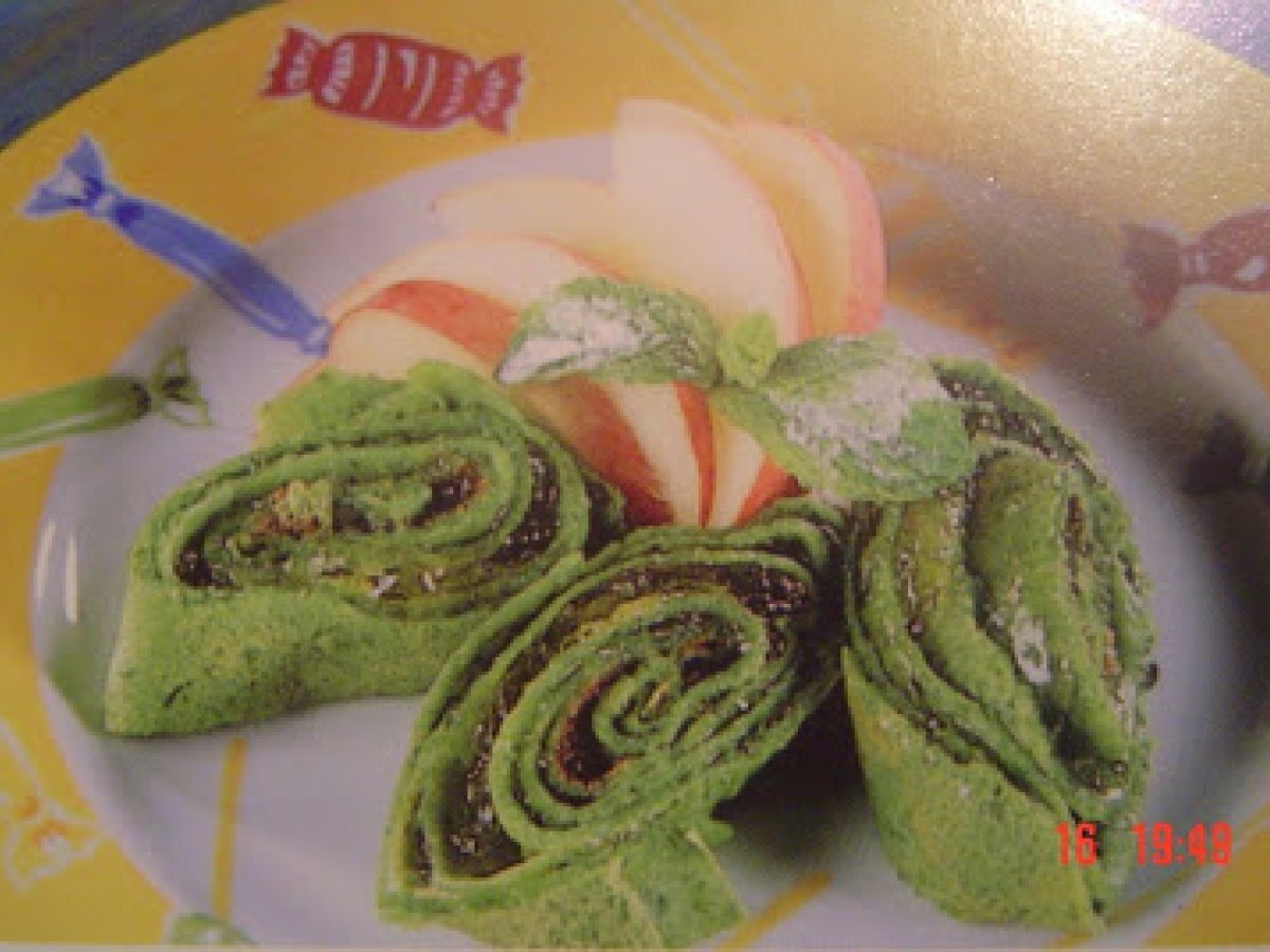 Clatite verzi cu menta si piersici PrecedentulUrmătorul Felul principalFoarte ușor50 min Trimite unui prieten Printează pagina Adresează o întrebare autorului Postează o poză cu rețeta gătită de tine Ingrediente 1 40 ml lapte 1 manuchi menta proaspata 40 g spanac 2 oua 100 g faina 2 linguri zahar 1 lingura ulei arahide 1 borcan conserva piersici 1 mar
