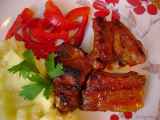 Coaste de miel cu stevie Felul principalFoarte ușor40 min Trimite unui prieten Printează pagina Adresează o întrebare autorului Postează o poză cu rețeta gătită de tine Ingrediente 4 coaste de miel 5 catei de usturoi, 1 pahar vin alb tarhon,rozmarin, cateva boabe de piper, Garnitura de stevie: 2 cepe, 2 rosii, 1 legatura stevie sare.