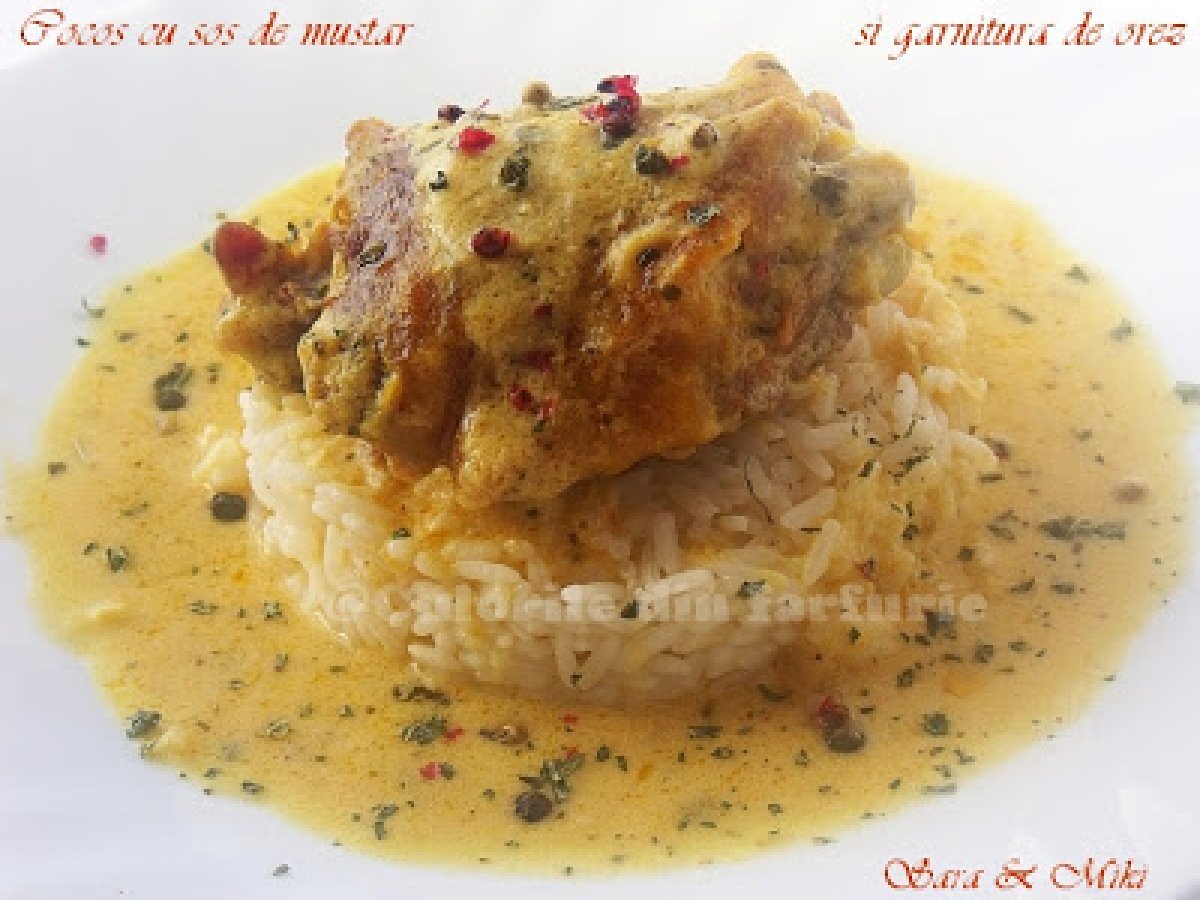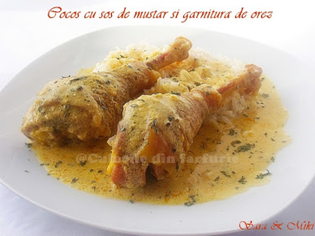 Cocos cu sos de mustar si garnitura de orez PrecedentulUrmătorul Felul principalFoarte ușor45 min Trimite unui prieten Printează pagina Adresează o întrebare autorului Postează o poză cu rețeta gătită de tine Ingrediente 4 pulpe si piept de cocos 1 fir de praz 2-3 catei de usturoi 1 lingurita de rozmarin cimbru uscat 1 lingurita de faina 3 lg de mustar dulce 1 pahar de vin alb 2 lg de smantana ulei sare piper