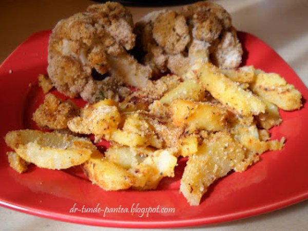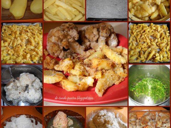Conopida pane cu cartofi prajiti la cuptor PrecedentulUrmătorul Felul principalFoarte ușor45 min Trimite unui prieten Printează pagina Adresează o întrebare autorului Postează o poză cu rețeta gătită de tine Ingrediente 4 Pt conopida pane 500 g conopida supa de legume 250 ml faina pesmet ulei de masline boia, maghiran, cimbru, busuioc Pt cartofii la cuptor 5 cartofi mai mari pesmet boia condimente, sare ulei de masline