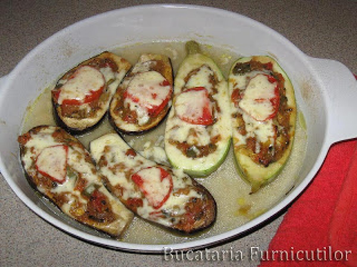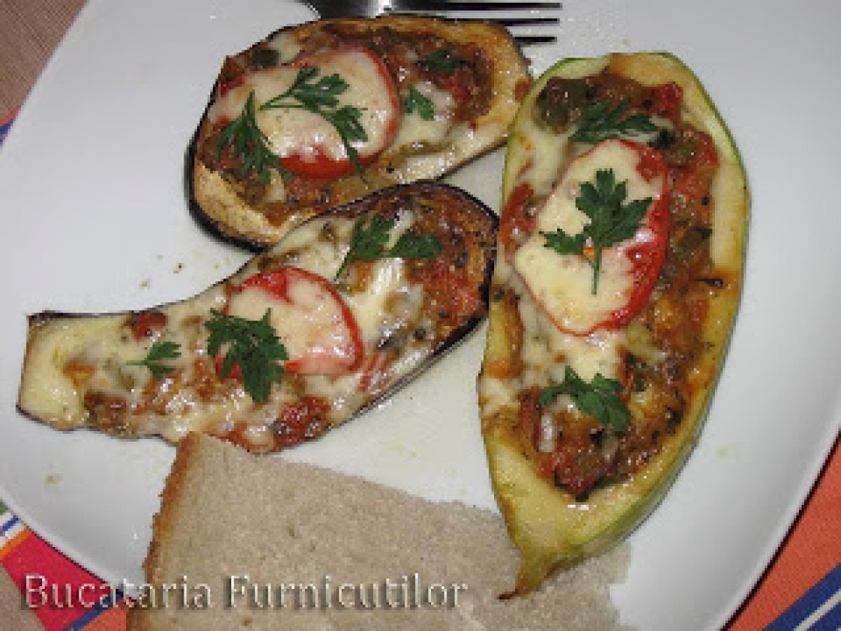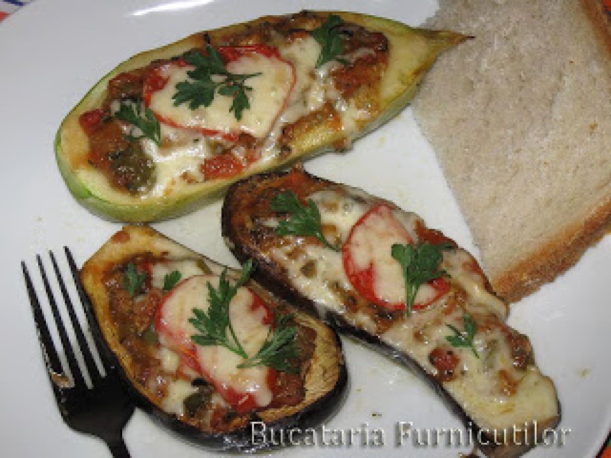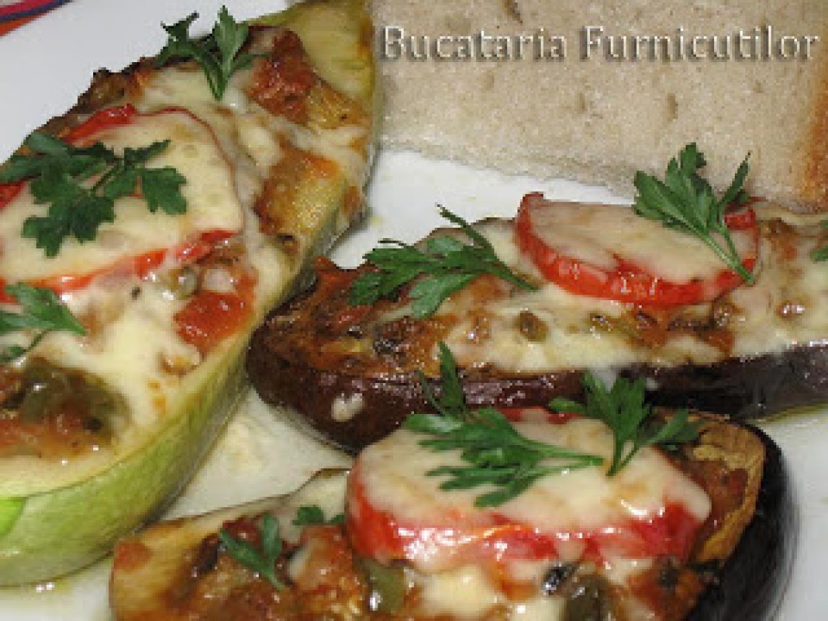 Corabioare din vinete PrecedentulUrmătorul Felul principalFoarte ușor40 min Trimite unui prieten Printează pagina Adresează o întrebare autorului Postează o poză cu rețeta gătită de tine Ingrediente 4 1 dovlecel potrivit 1 ceapa 1 ardei 1 - 2 rosii maricele (cam 400 g) 3 - 4 catei usturoi 2 - 3 linguri ulei de masline oregano, patrunjel, cimbru sare, piper 1 felie cascaval (50 g) - optional