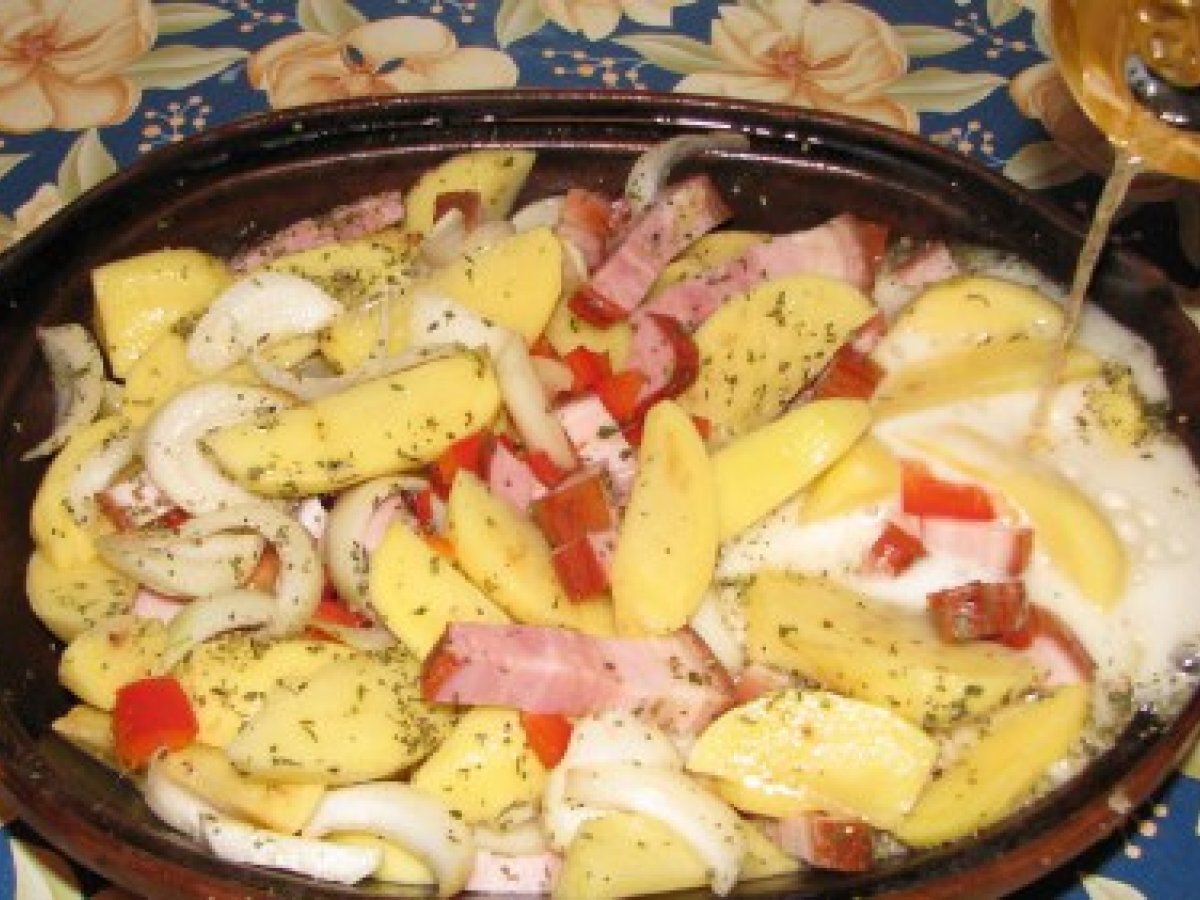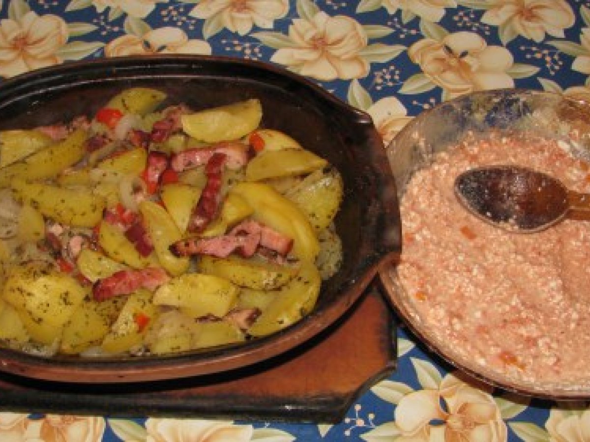 Costita afumata, cartofi, ceapa si ardei in bere cu branza de oaie si sos de rosii PrecedentulUrmătorul Felul principalFoarte ușor1 h 45 m Trimite unui prieten Printează pagina Adresează o întrebare autorului Postează o poză cu rețeta gătită de tine Ingrediente 4 Cartofi Ceapa BERE !!! Costita afumata Ardei gras Branza de oaie Sos de rosii