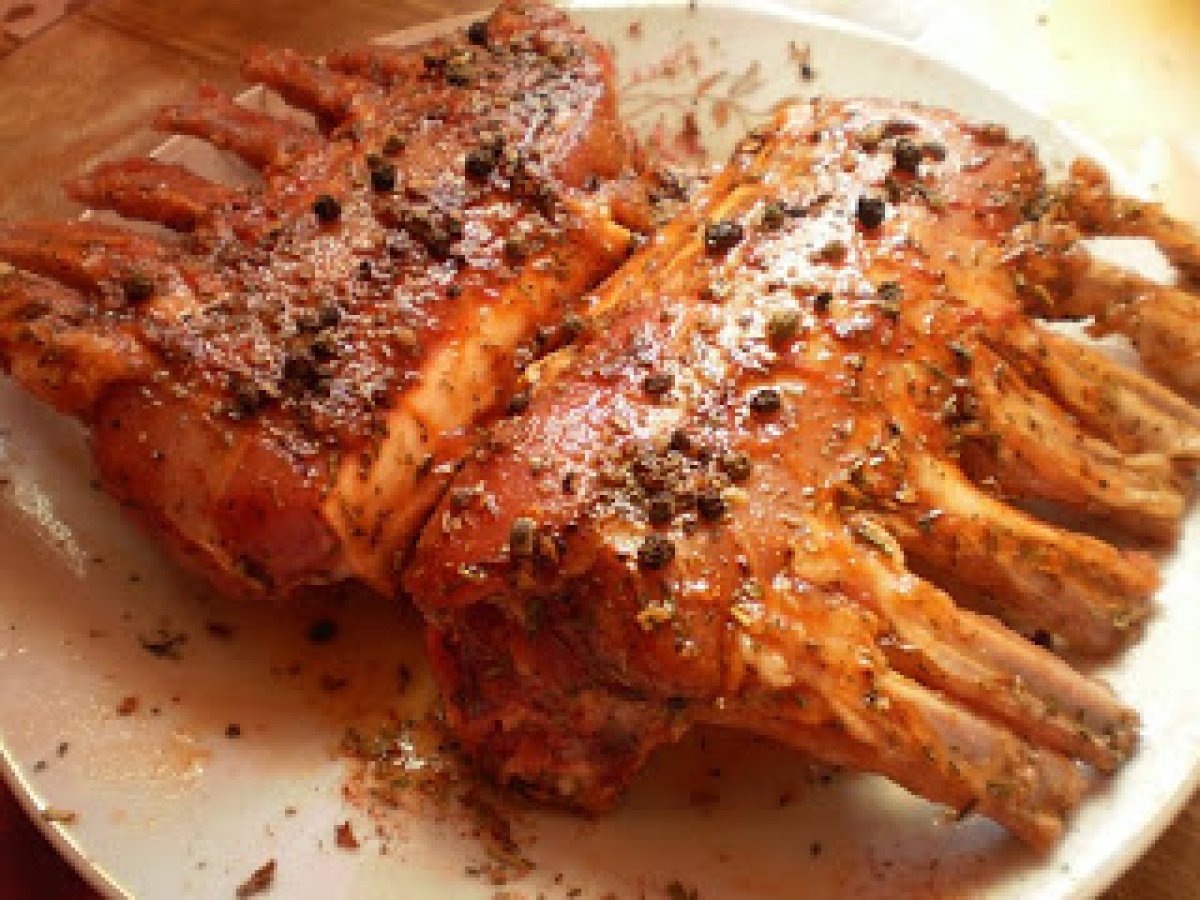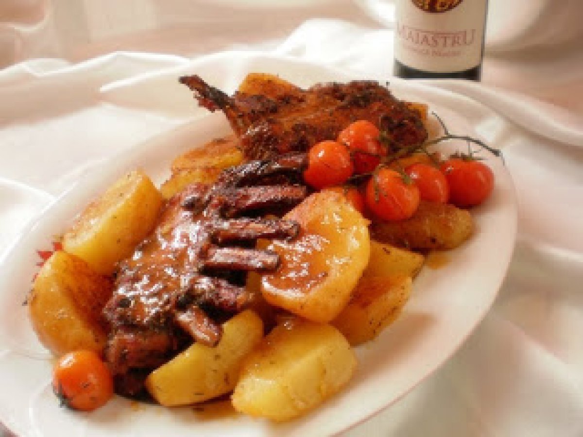 Costite de miel in sos de vin alb PrecedentulUrmătorul Felul principalFoarte ușor1 oră Trimite unui prieten Printează pagina Adresează o întrebare autorului Postează o poză cu rețeta gătită de tine Ingrediente 4 2 buc costita de miel(1,5 kg) 2 lgt ierburi provance 1 lgt salvie 1 lgt boia dulce 1/2 lgt piper alb macinat piper verde boabe(usor zdrobit) piper negru boabe (usor zdrobit) 2 lg miere albine 4-5 catei de usturoi 500 ml vin alb 4-5 lg ulei din samburi de strugure o lgt amidon sare Garnitura 1 kg cartofi 1 lgt boia de ardei dulce sare