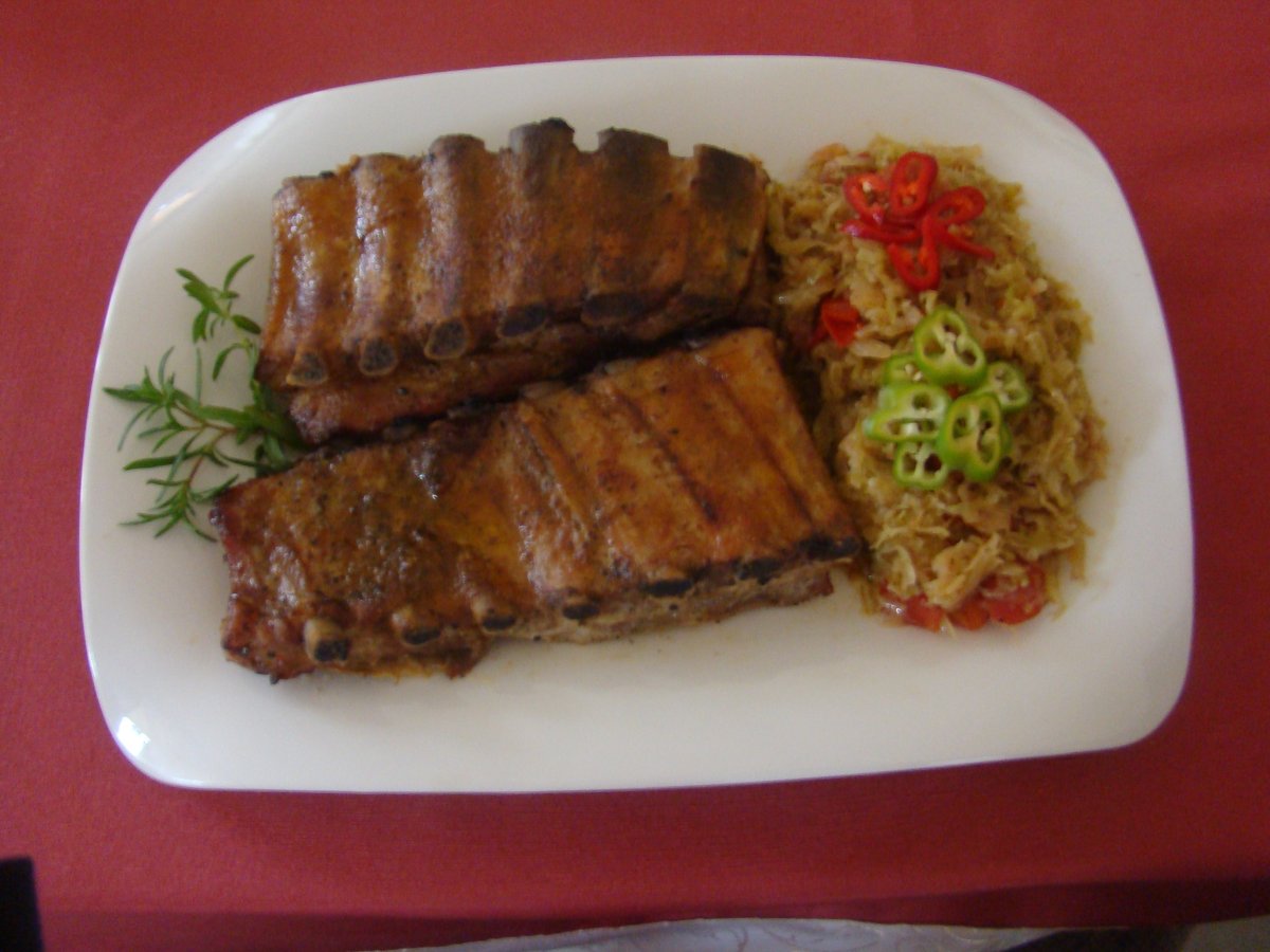 Costite picante la cuptor cu varza calita PrecedentulUrmătorul Felul principalUșor2 h 20 m Trimite unui prieten Printează pagina Adresează o întrebare autorului Postează o poză cu rețeta gătită de tine Ingrediente 8 Avem nevoie de: 1-1,5 kg costite de porc proaspete sare piper 2 linguri mustar de Dijon iute 5 linguri sos de soia 1 lingurita pasta de ardei iute 5-6 linguri ulei de masline 1 lingurita chimen macinat 1 lingura de miere de albine pentru varza calita 1 varza verde de 1-1,5 kg 1 ceapa uscata mare 3 rosii proaspete 1 crenguta de cimbru sare piper
