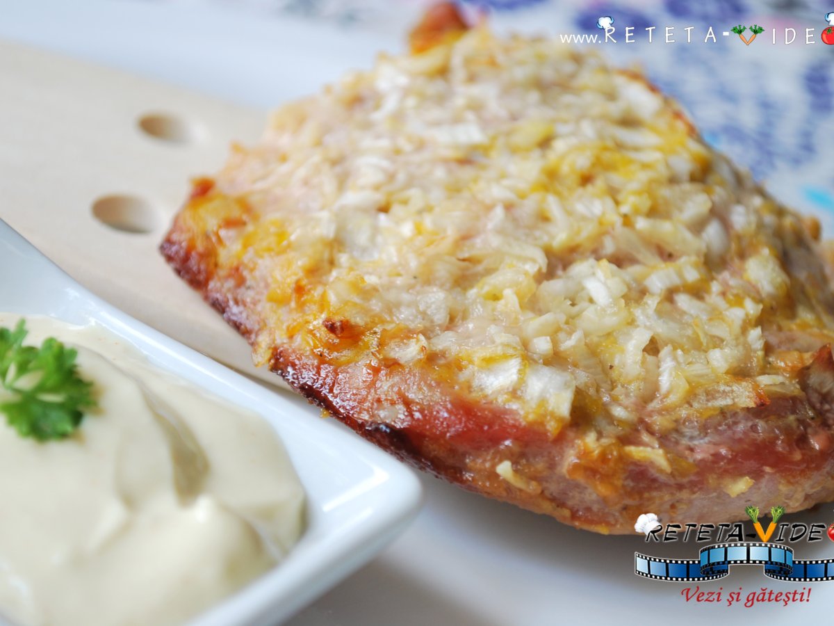 Cotlet de porc cu ceapa si sos de mustar (reteta video)