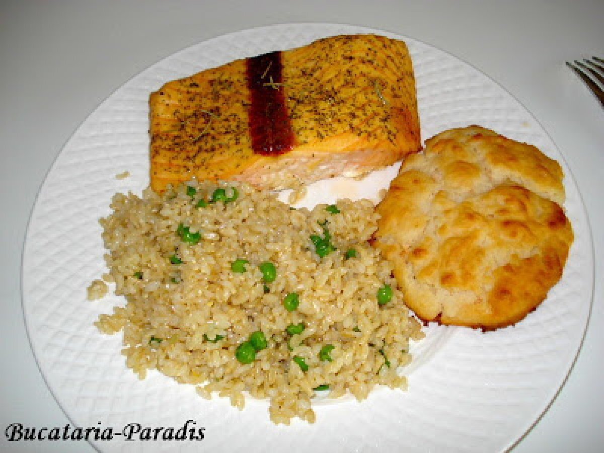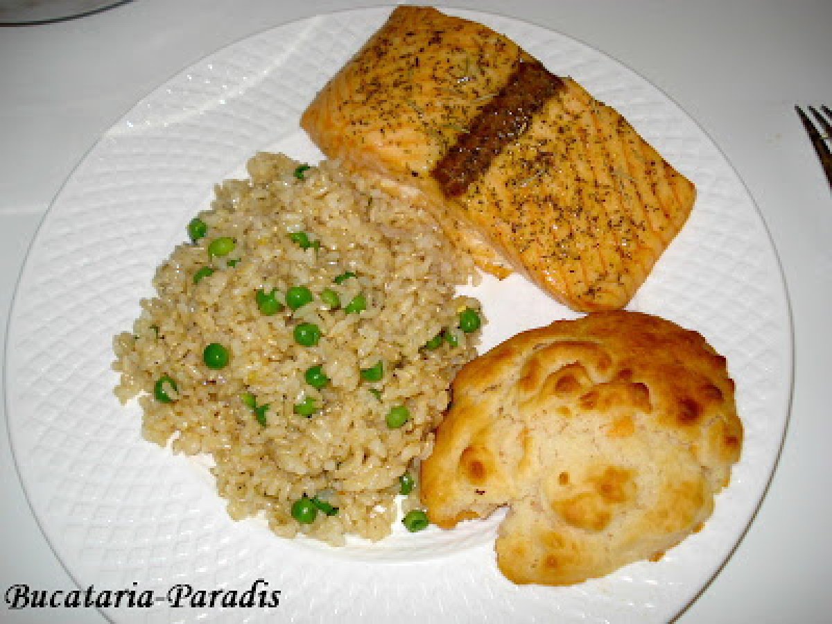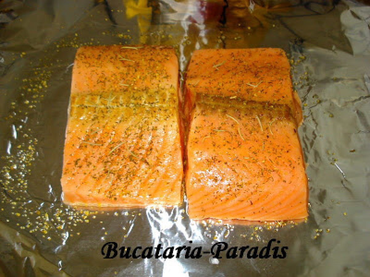 Cotlet de somon la cuptor PrecedentulUrmătorul Felul principalFoarte ușor55 min Trimite unui prieten Printează pagina Adresează o întrebare autorului Postează o poză cu rețeta gătită de tine Ingrediente 2 4 buc file de somon sare piper 3 lingurite condiment amestecat (chimen, rozmarin, cimbru) ulei de masline Ceapa verde taiata marunt o portocala taiata bucatele 10 masline verzi tocate o lingurita suc de portocale o lingurita suc de lamaie