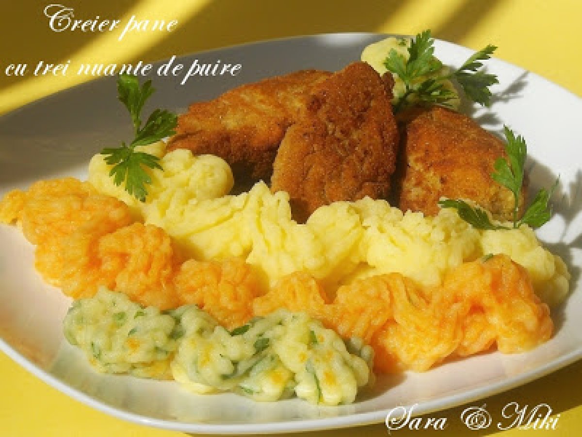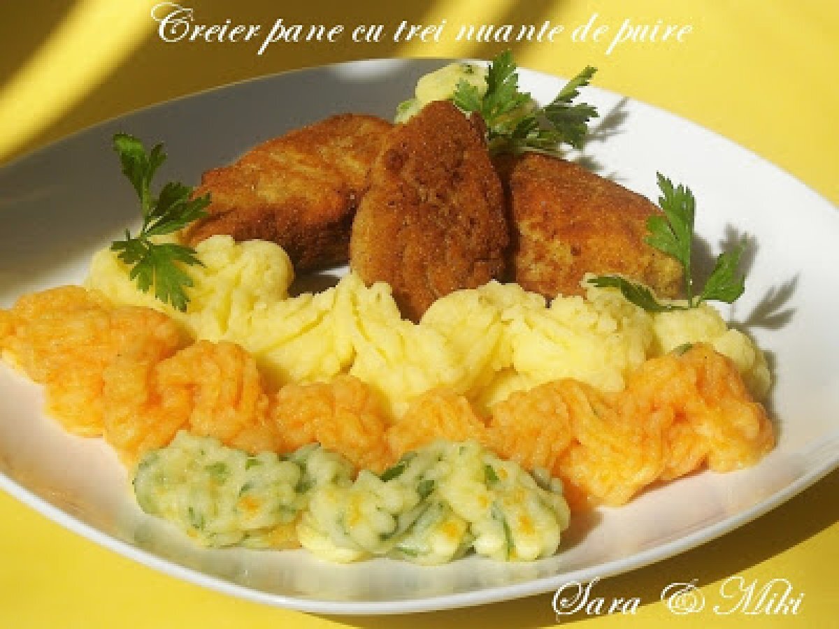 Creier pane cu trei nuante de piure PrecedentulUrmătorul Felul principalFoarte ușor45 min Trimite unui prieten Printează pagina Adresează o întrebare autorului Postează o poză cu rețeta gătită de tine Ingrediente 6 400 g creier de porc 2 oua faina cartofi morcovi lapte verdeata unt ulei sare piper
