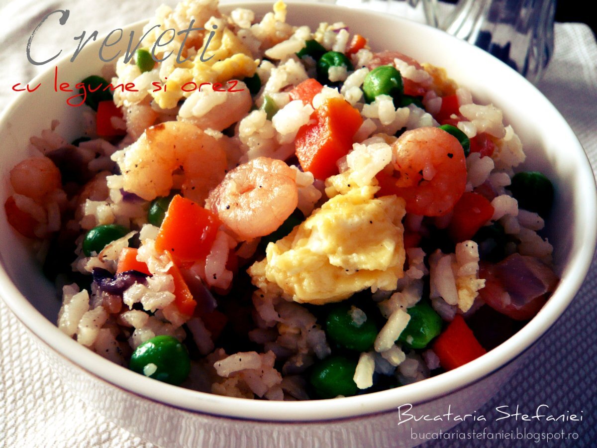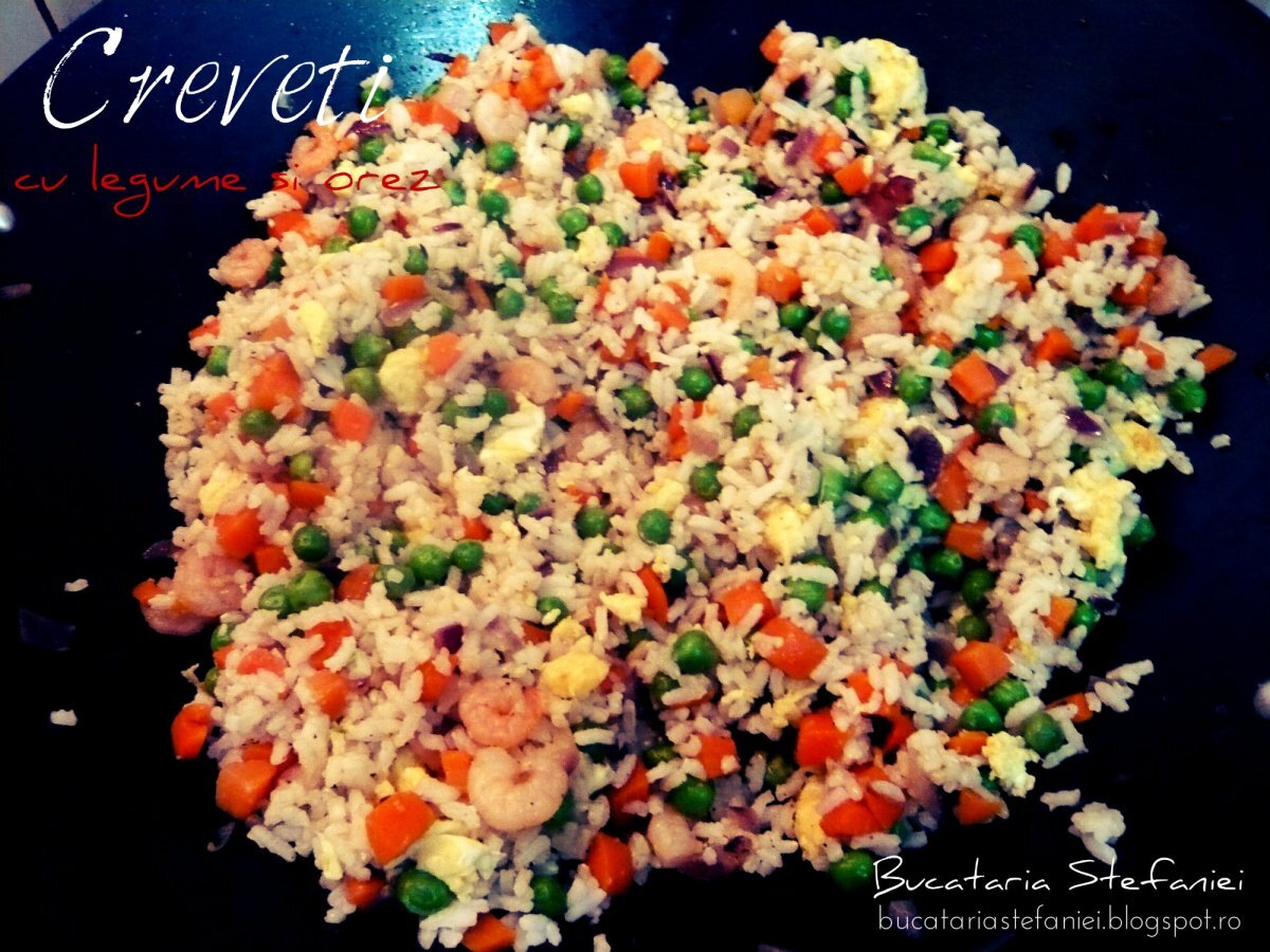 Creveti cu legume si orez la wok