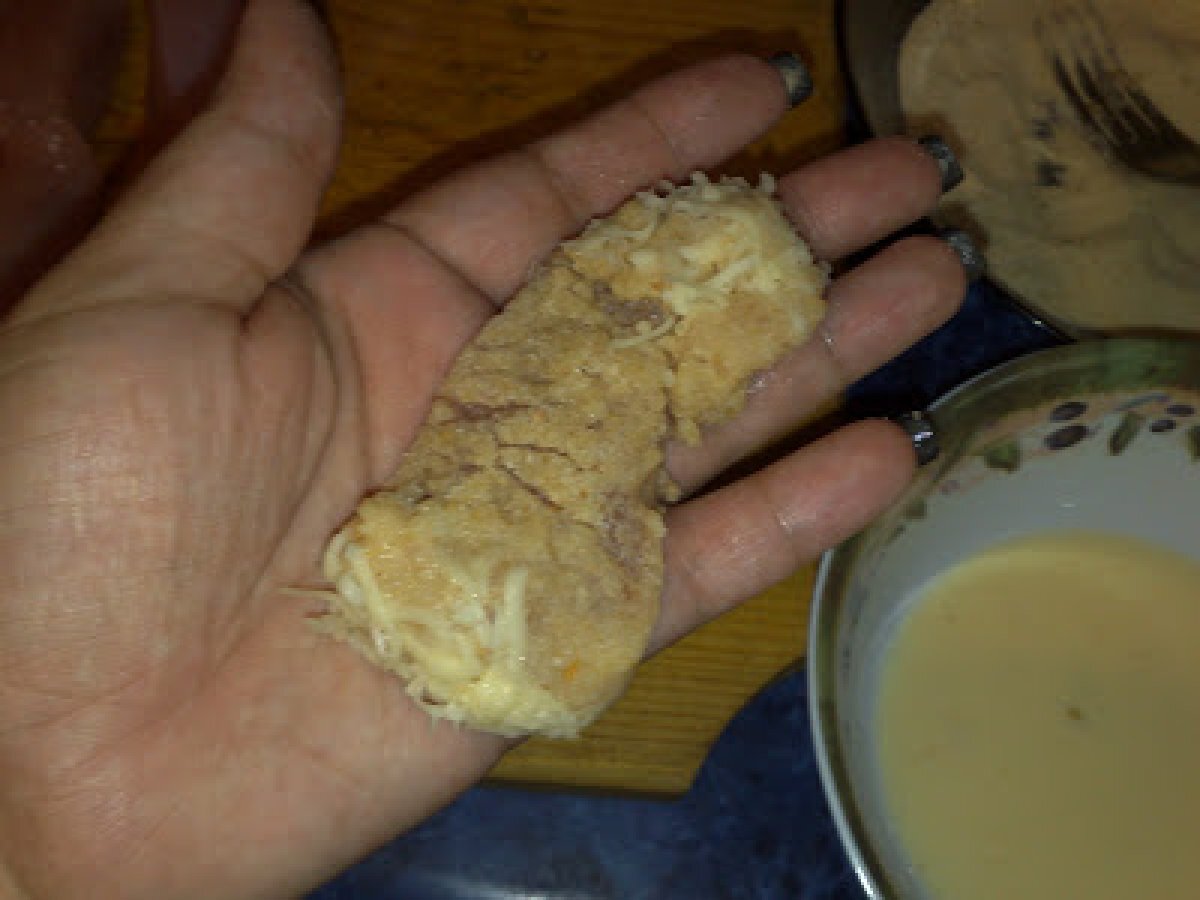 Crochete de curcan cu garnitura PrecedentulUrmătorul Felul principalFoarte ușor50 min Trimite unui prieten Printează pagina Adresează o întrebare autorului Postează o poză cu rețeta gătită de tine Ingrediente 4 piept de curcan pesmet 2 oua 100 ml lapte 50 g cascaval ras Pentru garnitura: 5 cartofi mari 150 g maioneza 100 g smantana 2 castraveti acrii 5-6 catei de usturoi