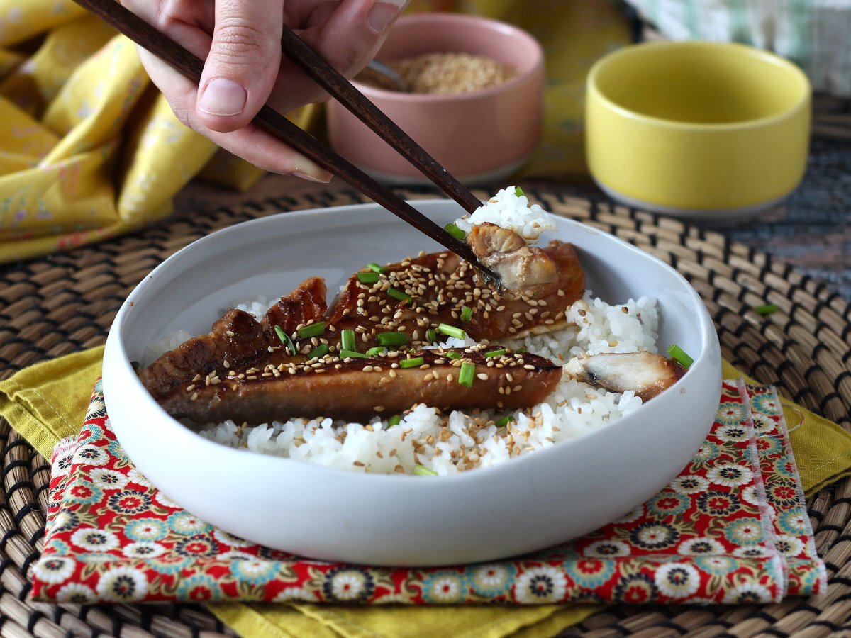 După ce ați învățat cum să gătiți macrou în cuptor, trebuie neapărat să încercați această rețetă de macrou în sos de soia! Acest pește adesea subestimat este de fapt foarte gustos, mai ales gătit în acest fel: un glazurat cu arome asiatice de neratat, pentru un amestec dulce și sărat. Tot ce trebuie să faci este să îl servești cu orez alb (în acest caz, am ales orezul pentru sushi), puțină ceapă verde tocată deasupra și ai obținut un preparat echilibrat și delicios!