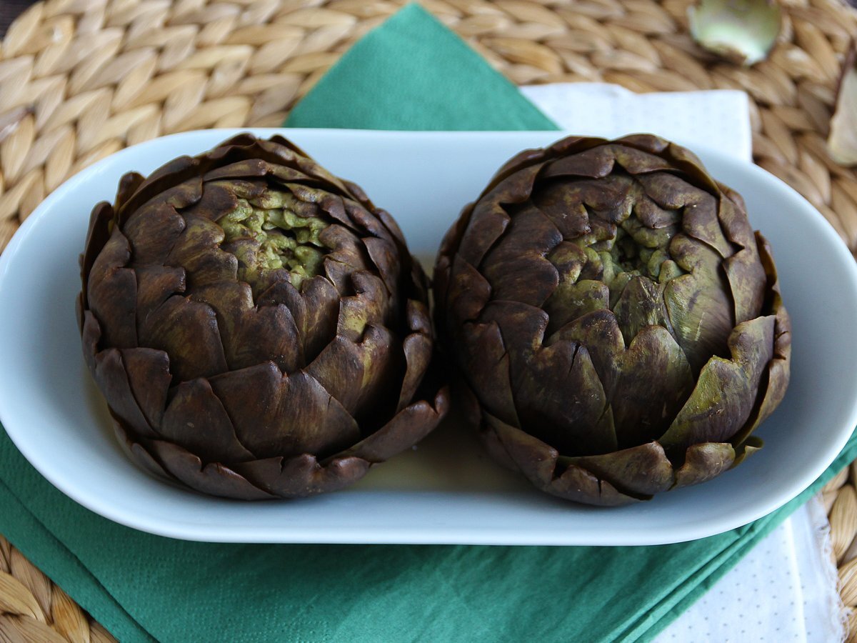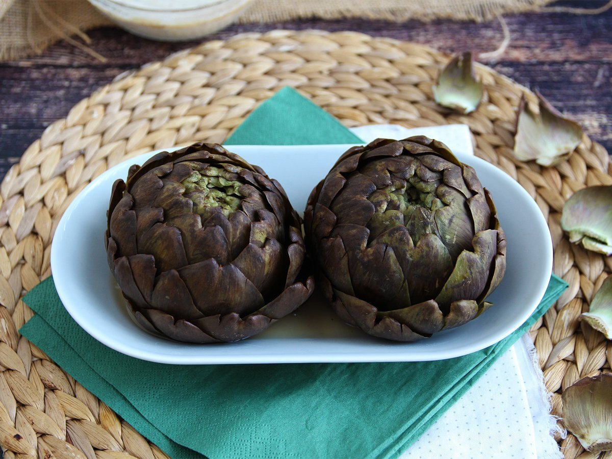 - Puneți anghinarele cu capul în jos într-o oală cu apă clocotită cu sare, asigurându-vă că sunt bine blocate pentru a nu se răsturna în timpul gătirii.