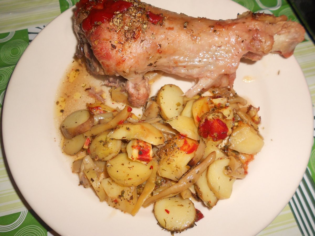 Curcan si fasole pastai in sos de vin alb la cuptor