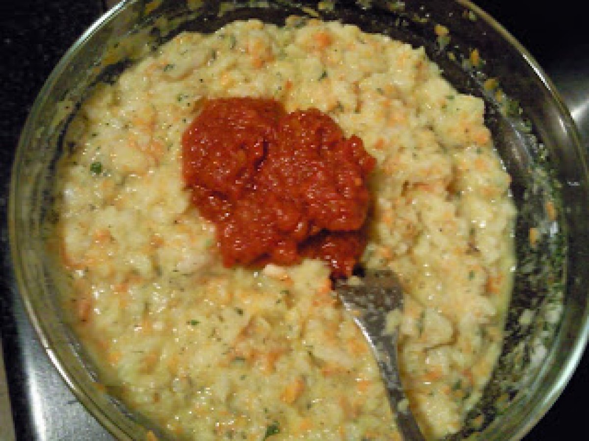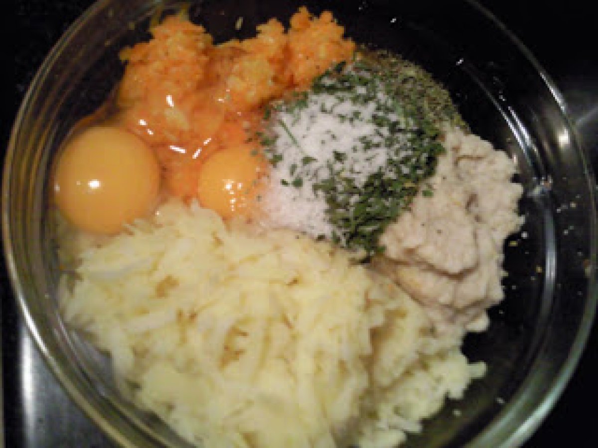Drob de cartofi si okara PrecedentulUrmătorul Felul principalFoarte ușor1 h 25 m Trimite unui prieten Printează pagina Adresează o întrebare autorului Postează o poză cu rețeta gătită de tine Ingrediente 4 5 cartofi fierti 3 oua 2 morcovi 1 ceapa 1 cana de okara ( soia care ne ramane cand facem laptele) 3 linguri bulion de ardei 3 linguri ulei masline 5 graunti usturoi marar,cimbru, oregano si sare o ceasca de prsmet