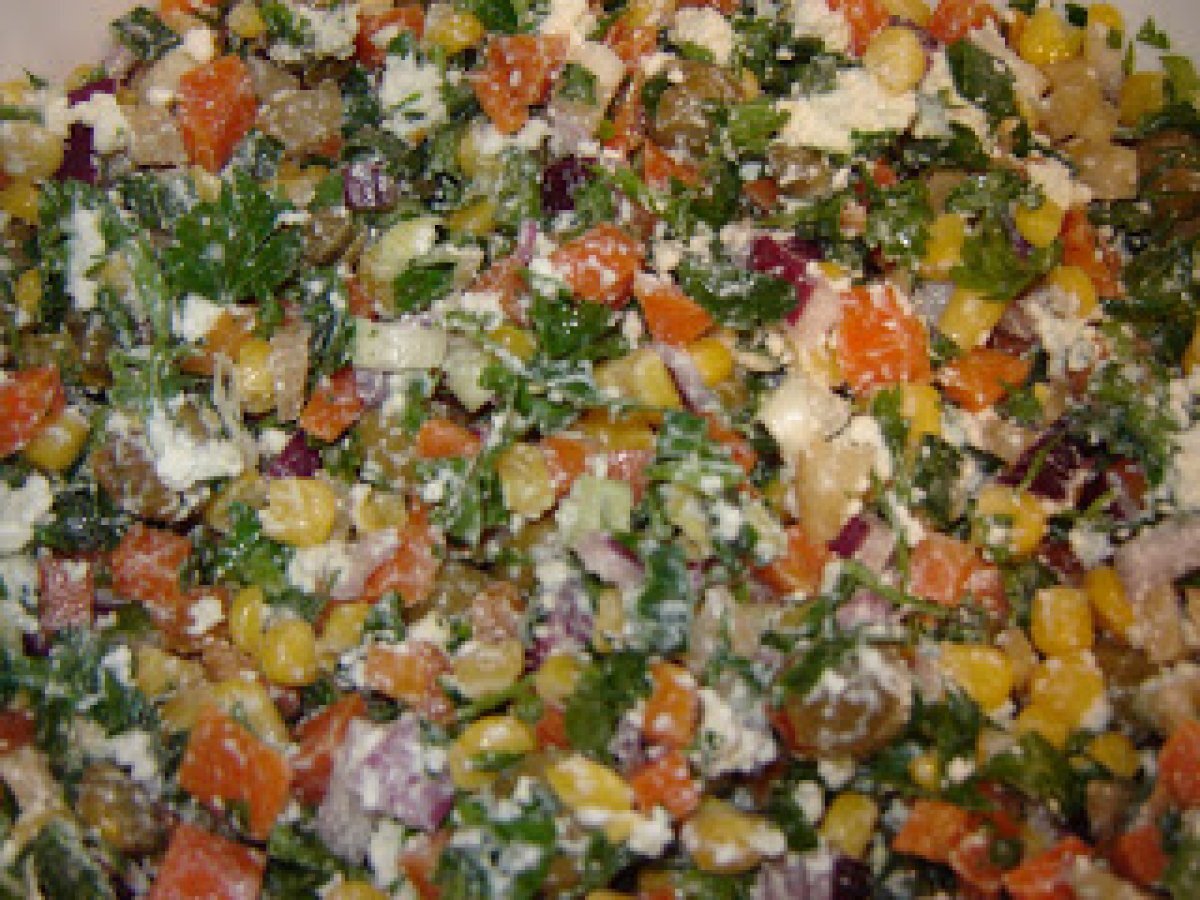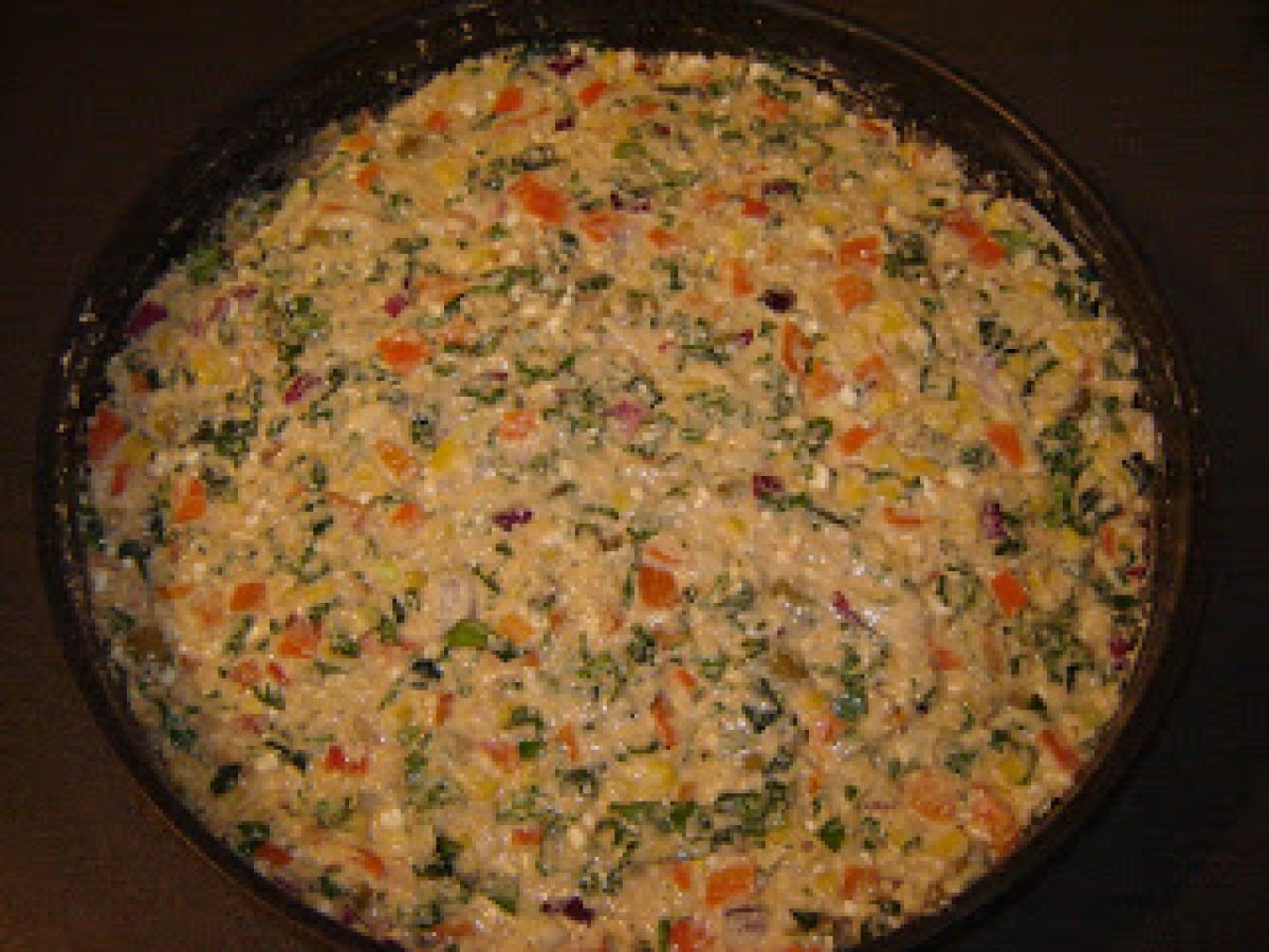 Drob de legume / baked vegetables PrecedentulUrmătorul Felul principalFoarte ușor1 h 20 m Trimite unui prieten Printează pagina Adresează o întrebare autorului Postează o poză cu rețeta gătită de tine Ingrediente 4 100 g masline verzi 1/2 cutie porumb 1 ceapa rosie 2 fire ceapa verde 2 morcovi 1 patrunjel 1 lingura capere in otet frunze de patrunjel 4 oua 200 g smantana 200 g telemea 3 linguri pesmet