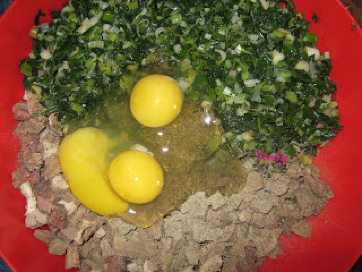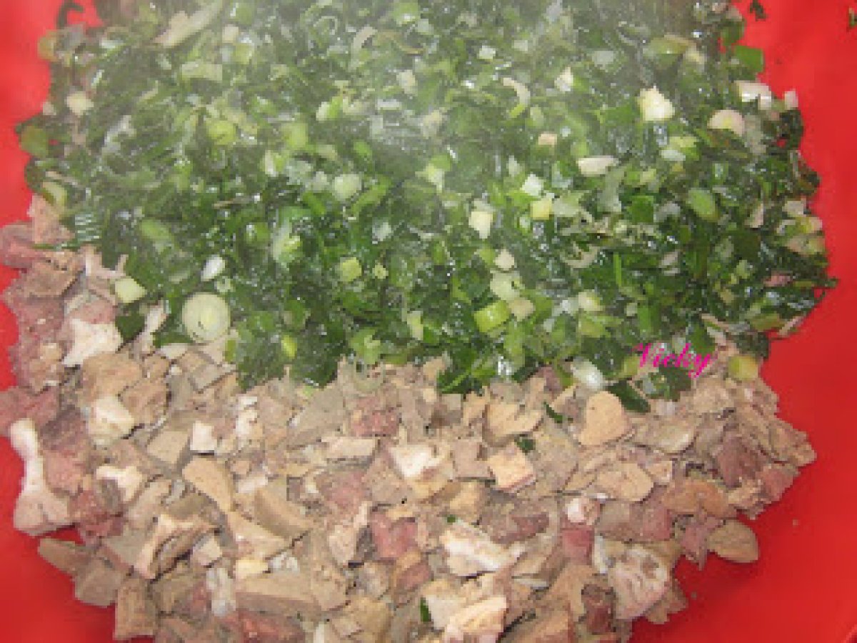 Drob de miel si ficat de pui PrecedentulUrmătorul Felul principalFoarte ușor1 h 40 m Trimite unui prieten Printează pagina Adresează o întrebare autorului Postează o poză cu rețeta gătită de tine Ingrediente 4 maruntaie de miel (plaman, ficat, inima, rinichi, etc) ficat de pui ceapa verde usturoi verde marar, patrunjel sare, piper 3 oua
