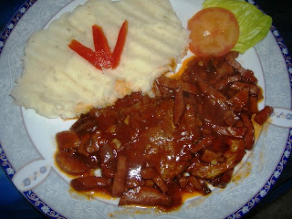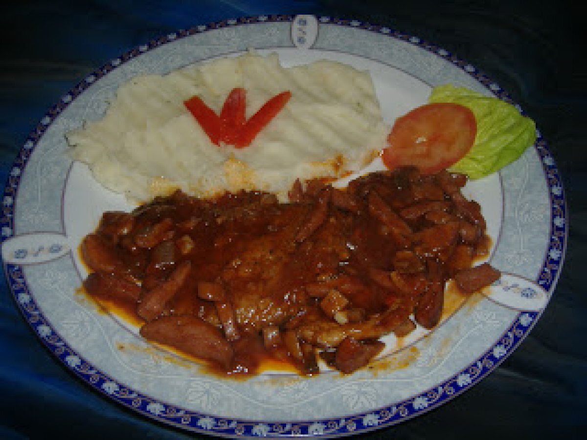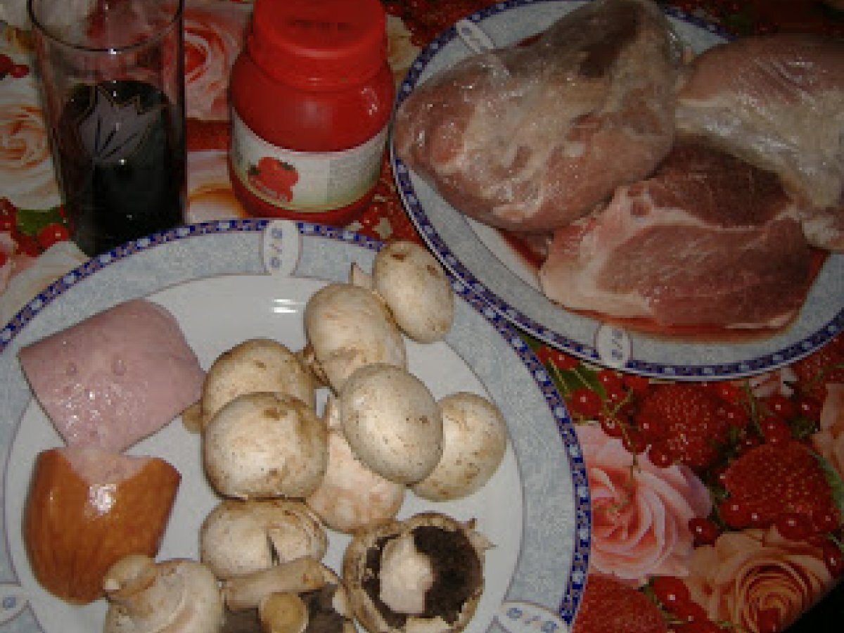 Escalop de porc "zingara" PrecedentulUrmătorul Felul principalFoarte ușor1 oră Trimite unui prieten Printează pagina Adresează o întrebare autorului Postează o poză cu rețeta gătită de tine Ingrediente 4 1 kg carne de porc(cotlet preferabil) 1 ceapa 150 g sunca 200 g ciuperci 1 pahar vin 2-3 ling pasta de tomate 1 ling faina sare, piper 1 ardei iute 1-2 catei de usturoi