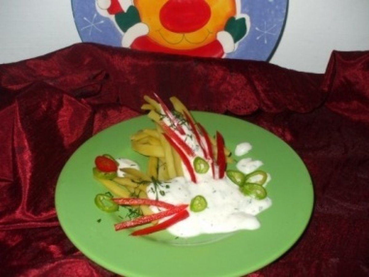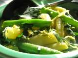 Fasole verde cu sos de usturoi PrecedentulUrmătorul Felul principalFoarte ușor55 min Trimite unui prieten Printează pagina Adresează o întrebare autorului Postează o poză cu rețeta gătită de tine Ingrediente 4 1 kg fasole verde cat mai tanara pentru sosul de usturoi: 1 capatana usturoi 3-4 linguri ulei 1 varf de cutit bicarbonat de sodiu 1 lingura otet (zeama de lamaie) 2-3 linguri smantana sau iaurt 1 lingurita marar sau patrunjel tocat sare, piper alb