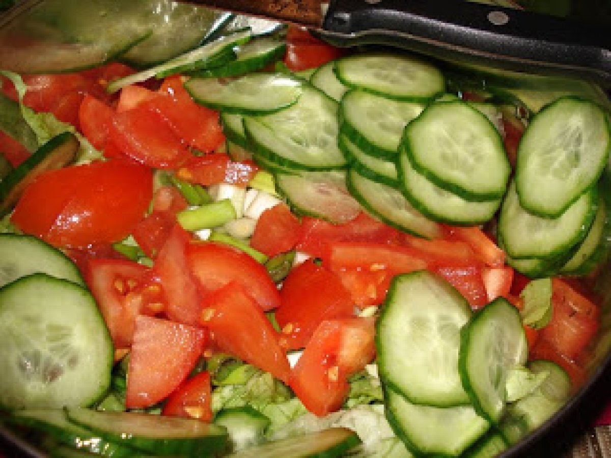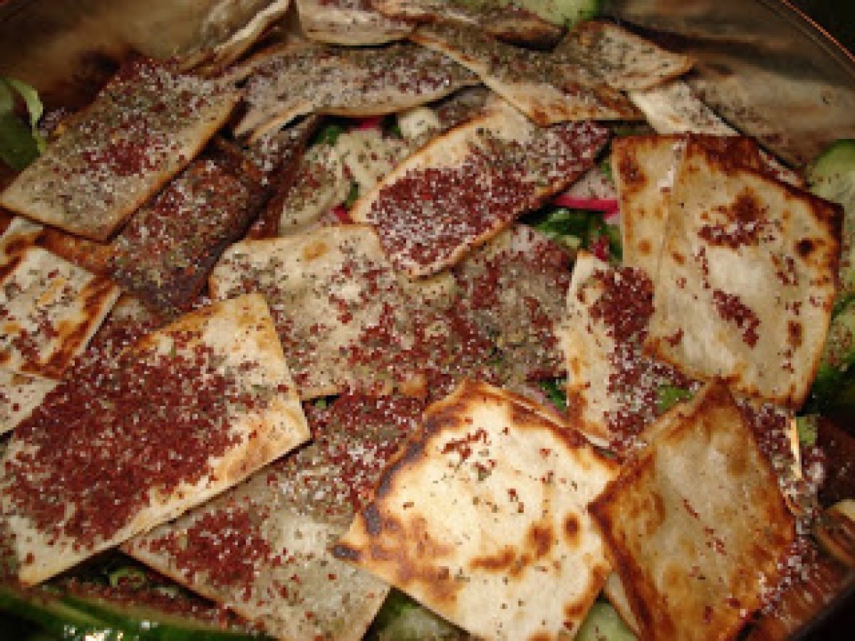 Fattoush: salata perfecta langa o friptura de miel! PrecedentulUrmătorul Felul principalFoarte ușor45 min Trimite unui prieten Printează pagina Adresează o întrebare autorului Postează o poză cu rețeta gătită de tine Ingrediente 4 1/2 de salata 3-4 fire de ceapa verde 2 rosii medii 1/2 de castravete o lipie libaneza o ridichie cateva fire de patrunjel tocate fin Pentru sos: o lamaie 3-4 linguri ulei sumak menta uscata sare si piper dupa gust
