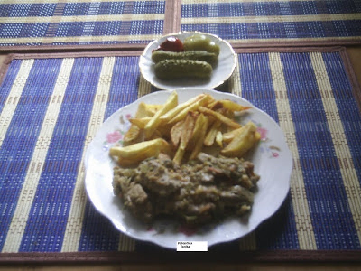Ficat de porc cu sos de mustar si hrean PrecedentulUrmătorul Felul principalFoarte ușor50 min74 Kcal Trimite unui prieten Printează pagina Adresează o întrebare autorului Postează o poză cu rețeta gătită de tine Ingrediente 4 1/2 kg ficat de porco ceapa mica 4 catei de usturoi 2 rosiio lingura mustaro lingurita hreanun pahar vin albsare, piper Cost estimat: 1.62Euros€ (0.41€/porție)