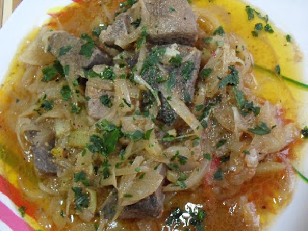 Ficat de vita cu ceapa PrecedentulUrmătorul Felul principalFoarte ușor50 min Trimite unui prieten Printează pagina Adresează o întrebare autorului Postează o poză cu rețeta gătită de tine Ingrediente 4 250 g ficat de vita, 5 cepe, cateva rosi 150 ml ulei, piper, ½ lingurita cimbru uscat, 100 ml apa, 1 ardei gras taiat bucatele mici, 2 catei de usturoi, cateva fire de patrunjel verde.