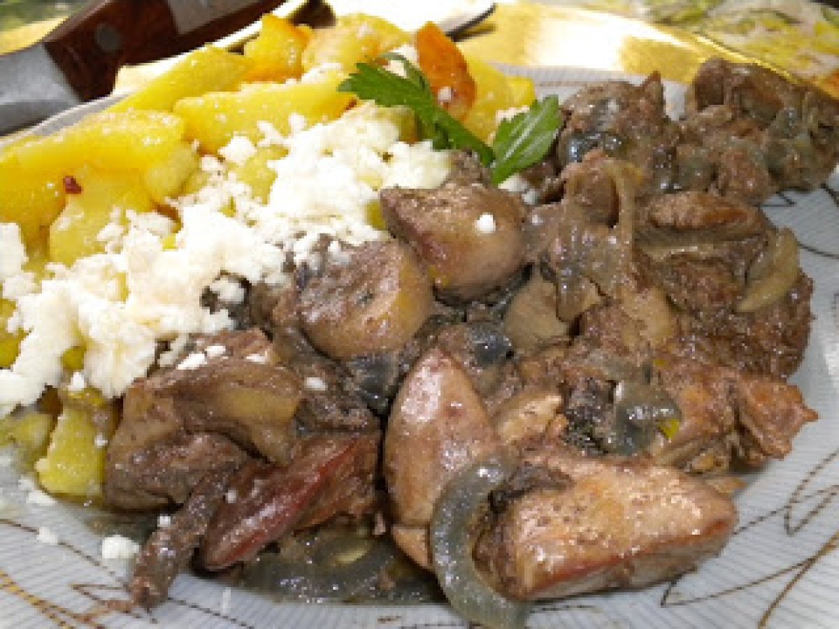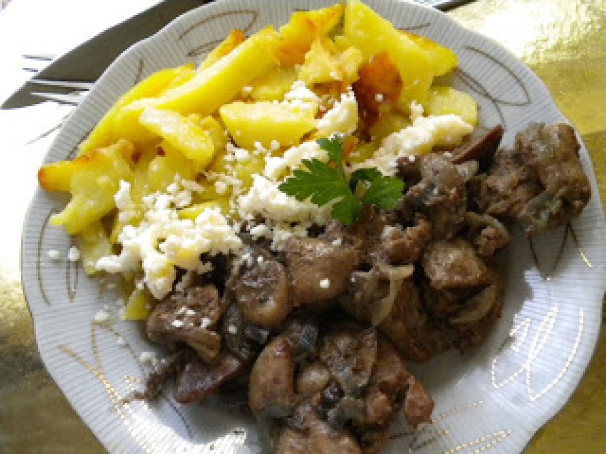 Ficat prajit cu sos de ceapa si ciuperci PrecedentulUrmătorul Felul principalFoarte ușor35 min95 Kcal Trimite unui prieten Printează pagina Adresează o întrebare autorului Postează o poză cu rețeta gătită de tine Ingrediente 4 o punga de ficat de pui, o mana de ciuperci din - conserva, o ceapa, 1-2 catei de usturoi, sare, ulei, parmezan ras pt decor. Cost estimat: 2.04Euros€ (0.51€/porție)