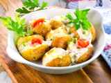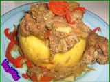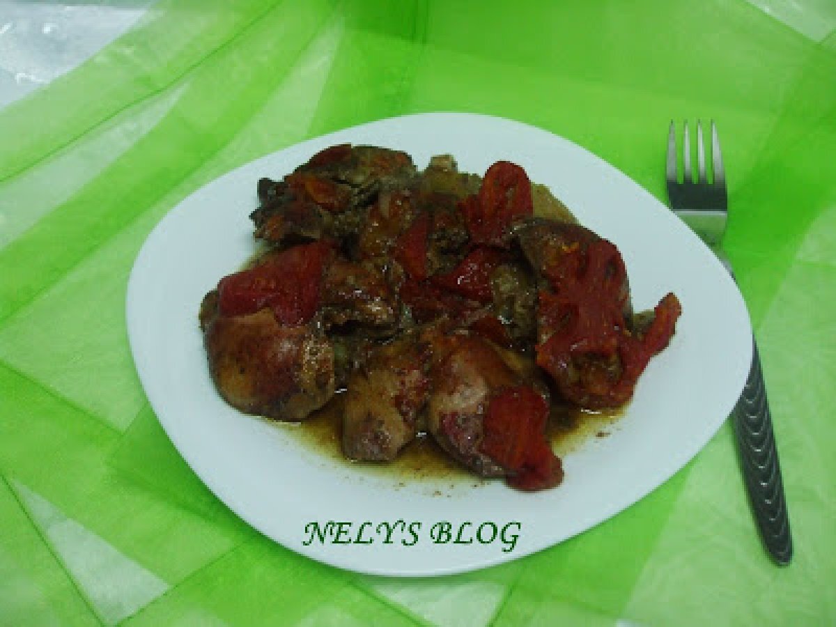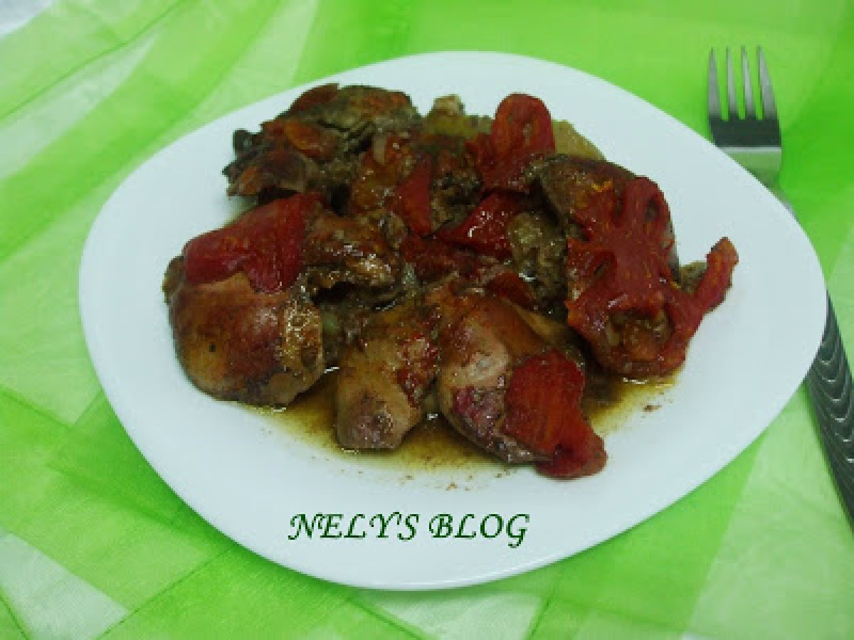 Ficatei de pui cu cartofi noi la cuptor PrecedentulUrmătorul Felul principalFoarte ușor30 min Trimite unui prieten Printează pagina Adresează o întrebare autorului Postează o poză cu rețeta gătită de tine Ingrediente 4 1 kg ficatei de pui 5-6 cartofi noi 1 ceapa mare 8-9 catei de usturoi 4 rosii 1 pahar de vin 3-4 foi de dafin boia de ardei dulce vegeta sare ulei