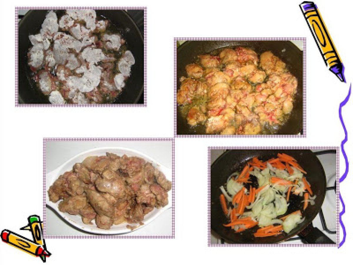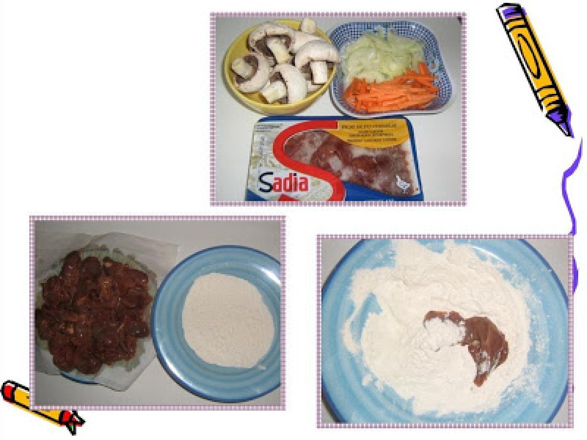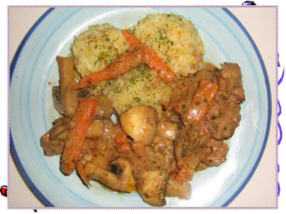 Ficatei de pui cu ciuperci si pilaf PrecedentulUrmătorul Felul principalFoarte ușor40 min Trimite unui prieten Printează pagina Adresează o întrebare autorului Postează o poză cu rețeta gătită de tine Ingrediente 4 450 g ficatei pui 250 g ciuperci 2 morcovi 2 cepe 150 g faina condimente 3 linguri smantana 1 pasta tomate 1 lingura pasta ardei 1 lingura hrean