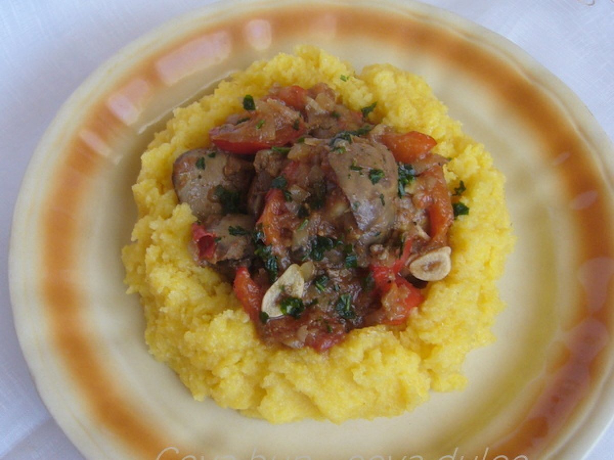Ficatei de pui raman in topul preferintelor mele si fetelor le place, doar sotul nu prea este incantat, cand pregatesc. Asadar, incerc sa pregatesc si sa fac diverse combinatii ca sa fie pe placul nostru. Azi v-am pregatit cu legume alaturi de o mamaliguta mare de tot, .... hmmmm.... dor imi era de o mamaliguta :)