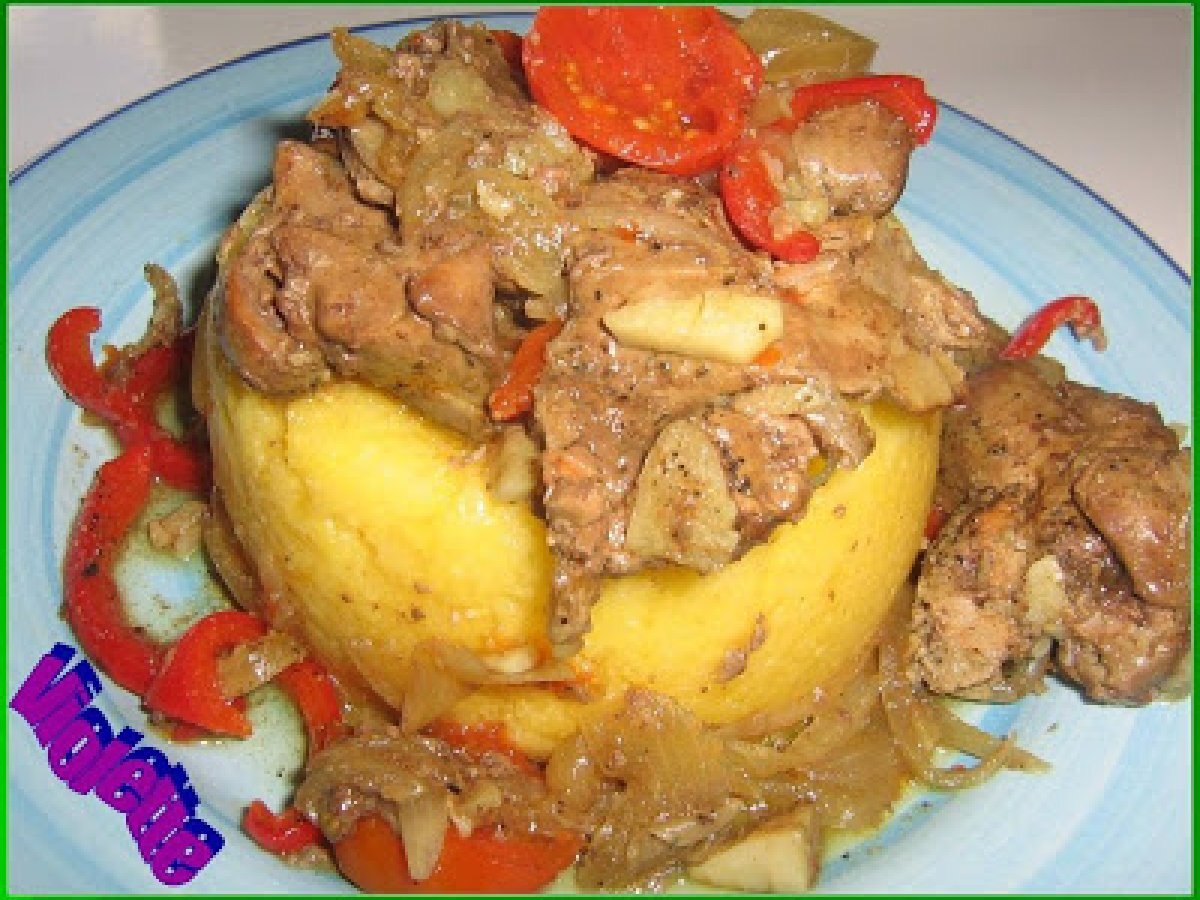 Ficatei de pui la cuptor cu mamaliguta PrecedentulUrmătorul Felul principalFoarte ușor1 h 5 m Trimite unui prieten Printează pagina Adresează o întrebare autorului Postează o poză cu rețeta gătită de tine Ingrediente 2 500 g ficatei de pui un ardei rosu o ceapa rosii cherry cativa catei de usturoi cateva felii de slaninuta afumata sare, piper.