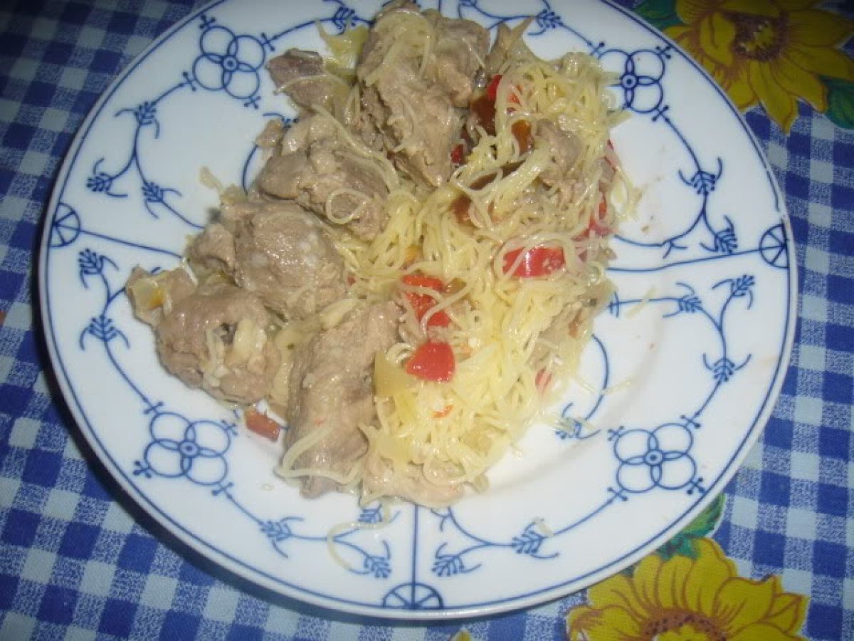 Fidea cu carne PrecedentulUrmătorul Felul principalFoarte ușor40 min Trimite unui prieten Printează pagina Adresează o întrebare autorului Postează o poză cu rețeta gătită de tine Ingrediente 4 carne de porc fideluta ardei capia ardei iute usturoi ceapa