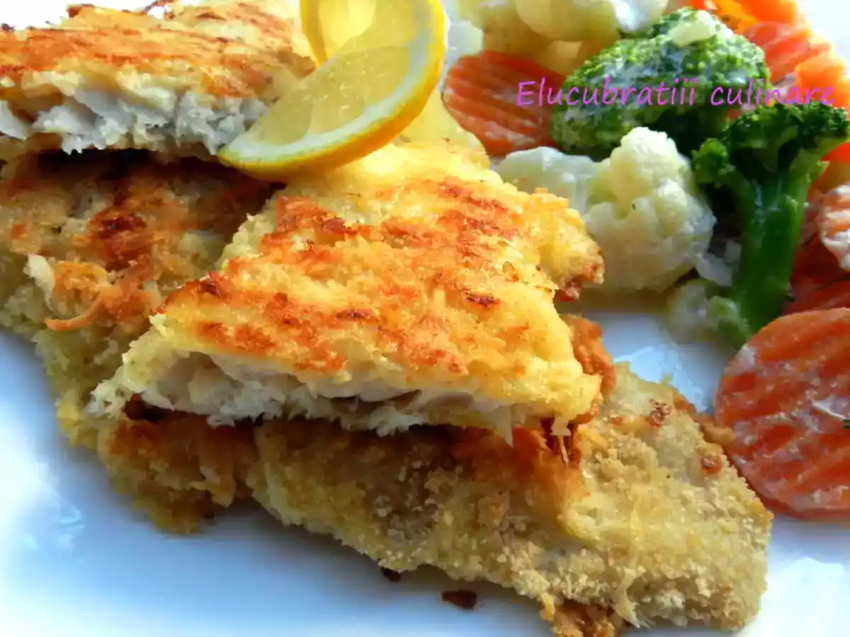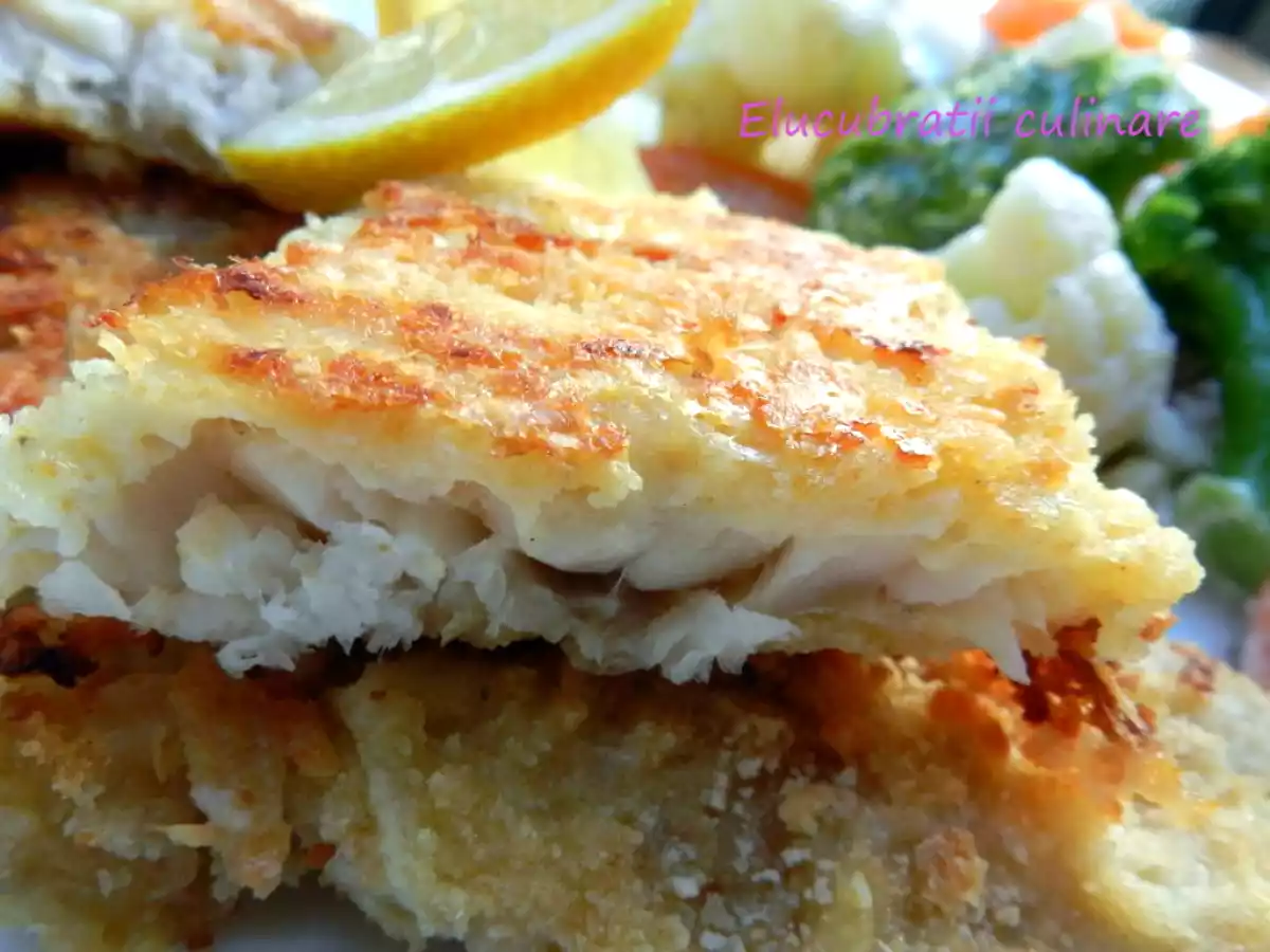 File de cod gratinat PrecedentulUrmătorul Felul principalFoarte ușor40 min Trimite unui prieten Printează pagina Adresează o întrebare autorului Postează o poză cu rețeta gătită de tine super bun cu garnitura de legume Ingrediente 2 4 fileuri de cod, sare, piper proaspăt măcinat, 1 ou mare, 4 linguri lapte, 4 linguri pesmet, 4 linguri cașaval ras, 2 linguri ulei de măsline, feliuțe de lămâie.