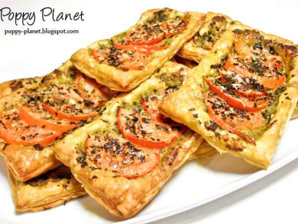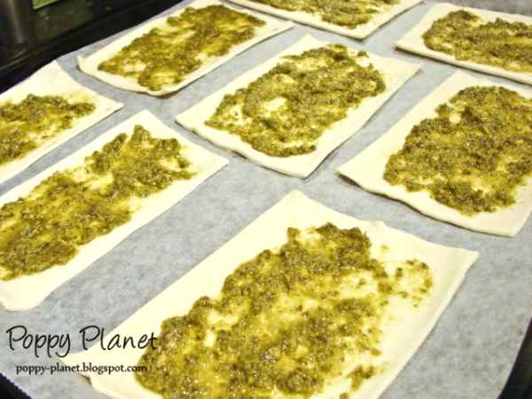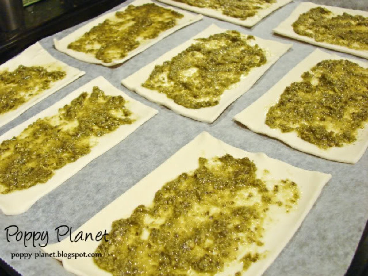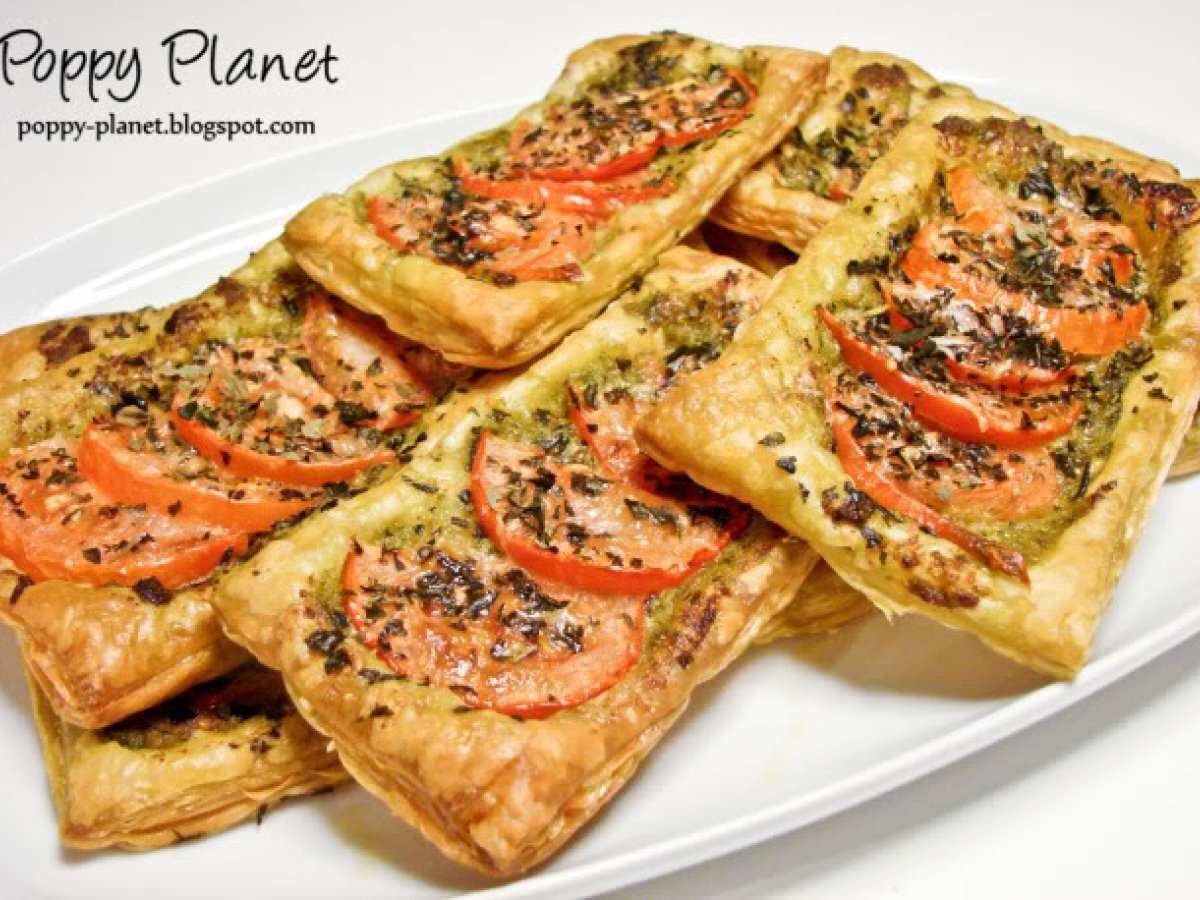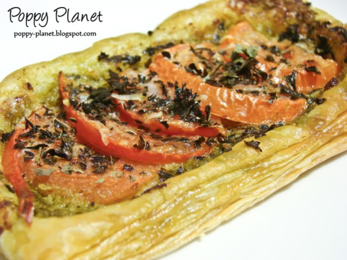 Foietaj cu pesto si rosii PrecedentulUrmătorul Felul principalFoarte ușor50 min Trimite unui prieten Printează pagina Adresează o întrebare autorului Postează o poză cu rețeta gătită de tine Ingrediente 2 aluat foietaj 4 rosii (nu va uitati la poza :) ) pesto parmezan ras busuioc