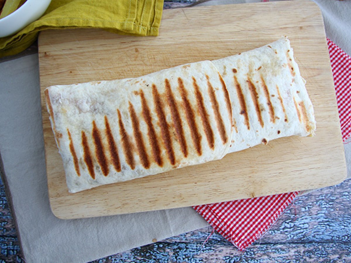 Puteti face porti mai mici utilizand cate o singura tortilla. Impachetati cu grija si sigilati bine marginile.