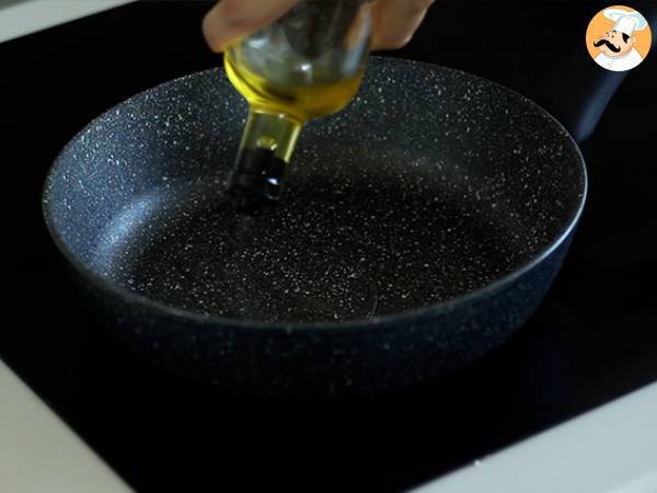 Incalziti o tigaie la foc mediu cu un pic de ulei de masline.