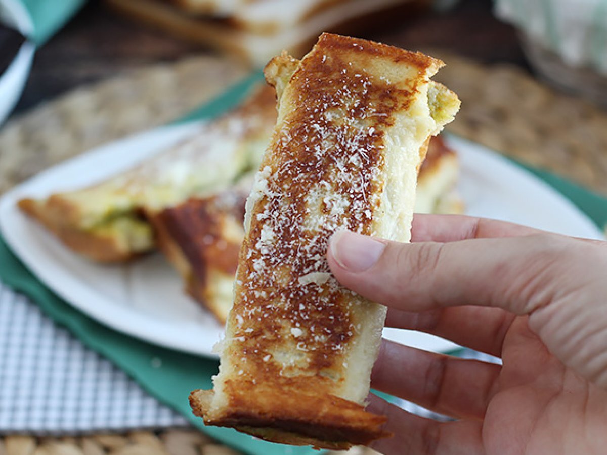 Un mod simplu si original de a transforma feliile de paine intr-un sandwich delicios. Si nu uitați parmezanul ras pentru un plus de savoare:-)