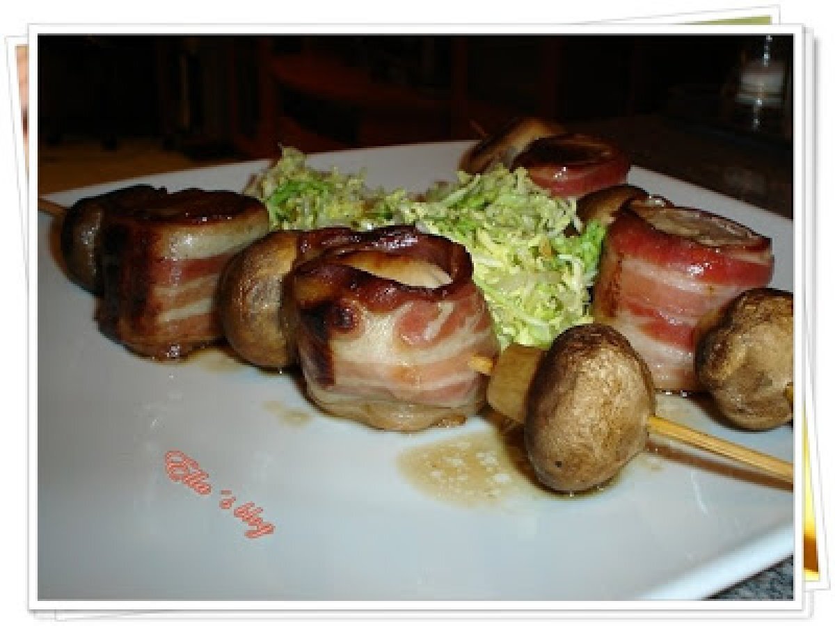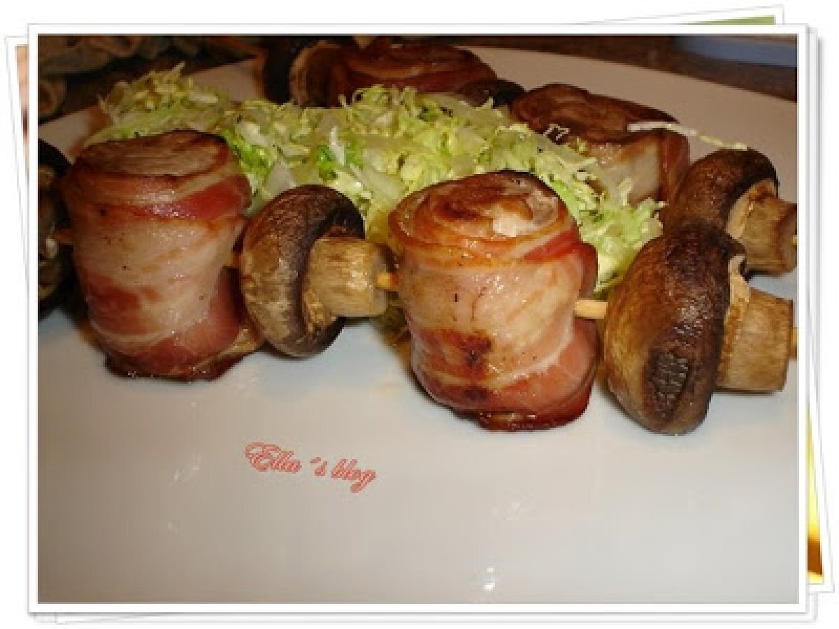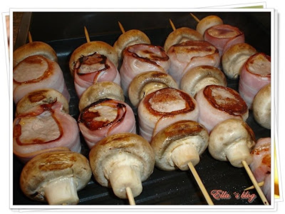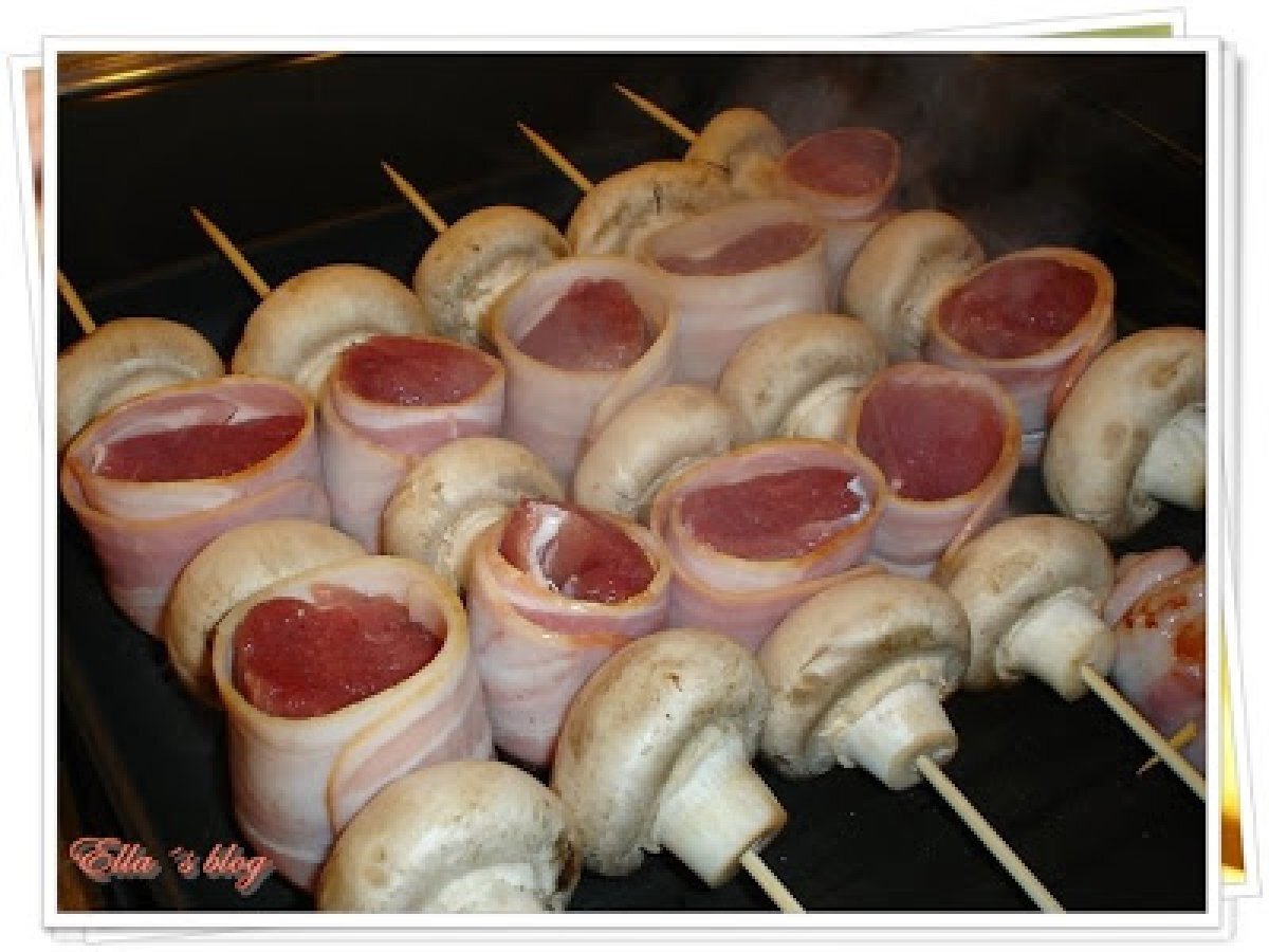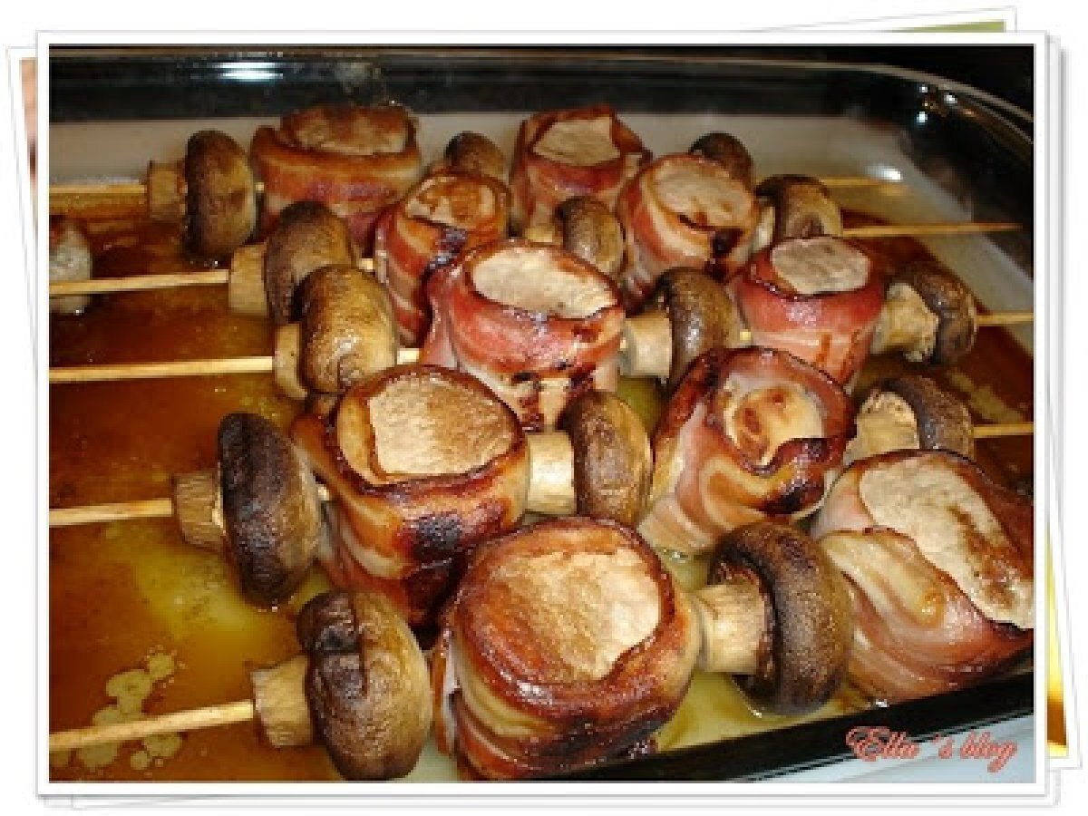 Frigarui din muschiulet de porc, bacon si ciuperci PrecedentulUrmătorul Felul principalFoarte ușor50 min Trimite unui prieten Printează pagina Adresează o întrebare autorului Postează o poză cu rețeta gătită de tine Ingrediente 2 500 g muschiulet de porc (2 bucati) 12 felii de beicon afumat 600 g ciuperci de marime potrivita (o tavita) ulei, sare, piper