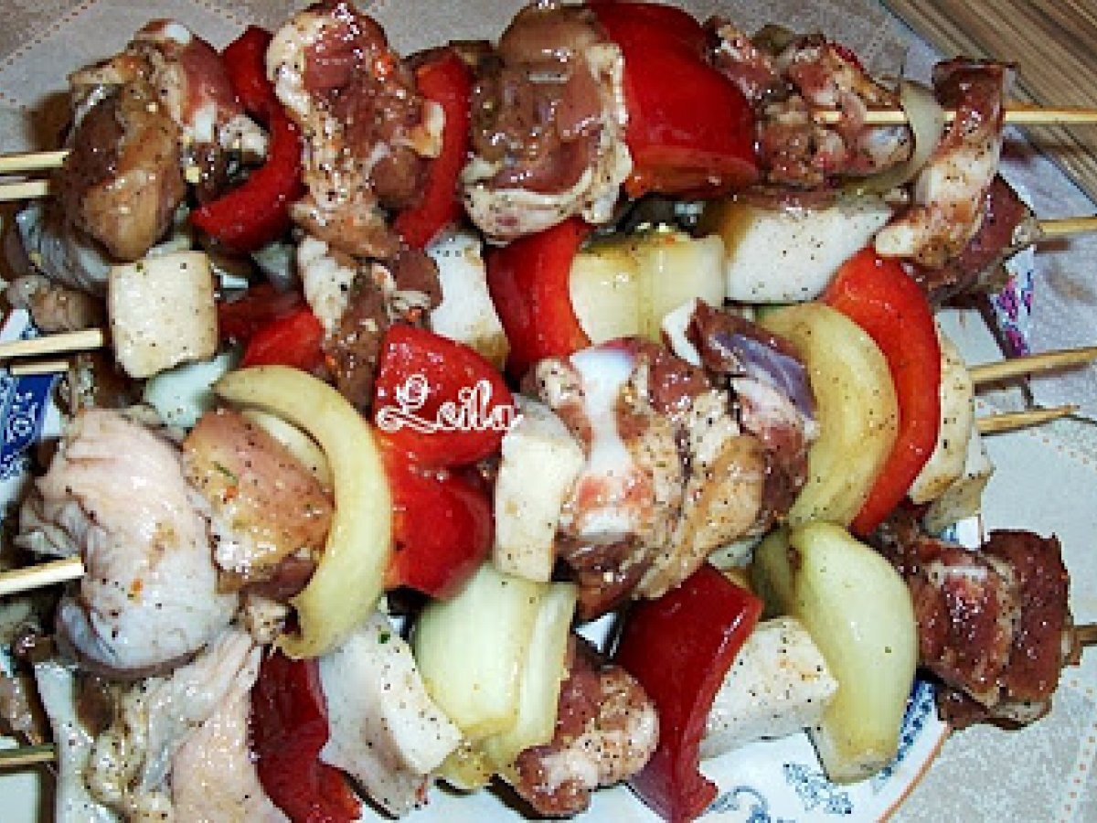 Frigarui la gratar PrecedentulUrmătorul Felul principalFoarte ușor3 h 20 m Trimite unui prieten Printează pagina Adresează o întrebare autorului Postează o poză cu rețeta gătită de tine Ingrediente 4 5-6 pulpe pui partea superioara 400 g piept de porc 2 ardei grasi (rosii, galbeni , verzi , de care dispuneti) 5-6 bucati ceapa slanina afumata sare. piper macinat, d elikat ulei tepuse de lemn pentru carne