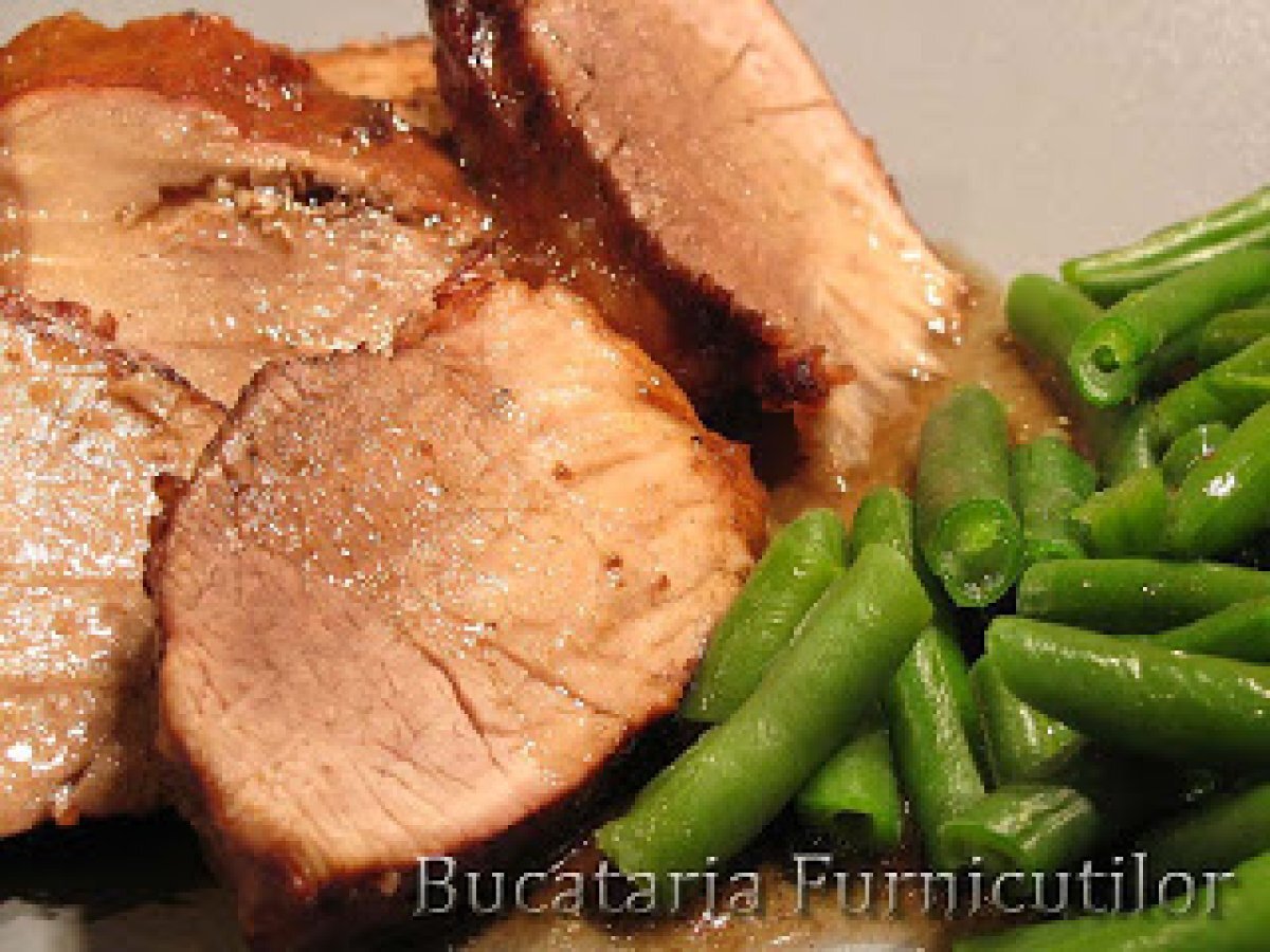 Friptura cu sos de vin si cafea PrecedentulUrmătorul Felul principalFoarte ușor45 min Trimite unui prieten Printează pagina Adresează o întrebare autorului Postează o poză cu rețeta gătită de tine Ingrediente 6 1,5 kg pulpa de porc 300 ml vin rosu sec 300 ml vin alb sec 4 linguri boabe de cafea 6-7 catei de usturoi 2 linguri zahar brun coaja de la o lamaie 2 linguri de faina 1 lingura de amidon 2 linguri ulei cateva crengute de cimbru sare, piper