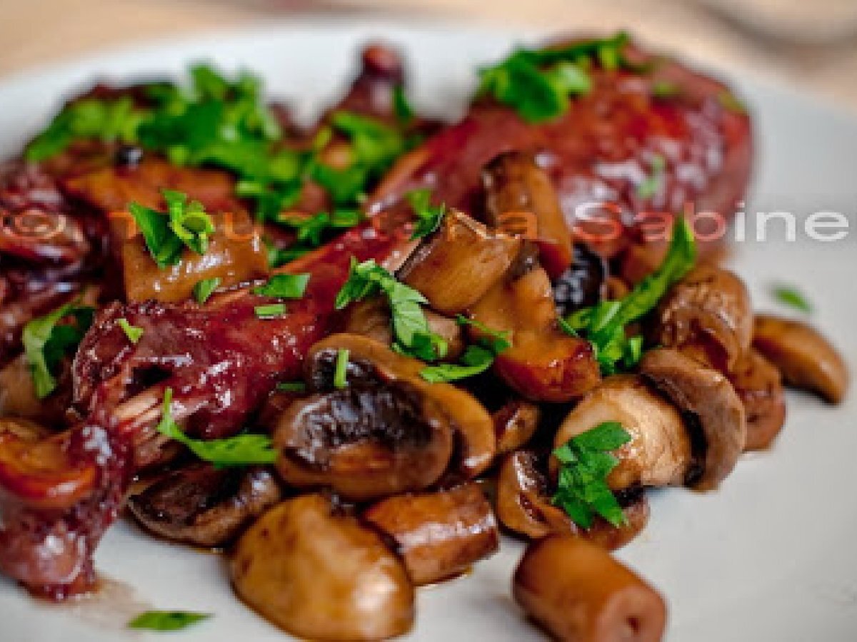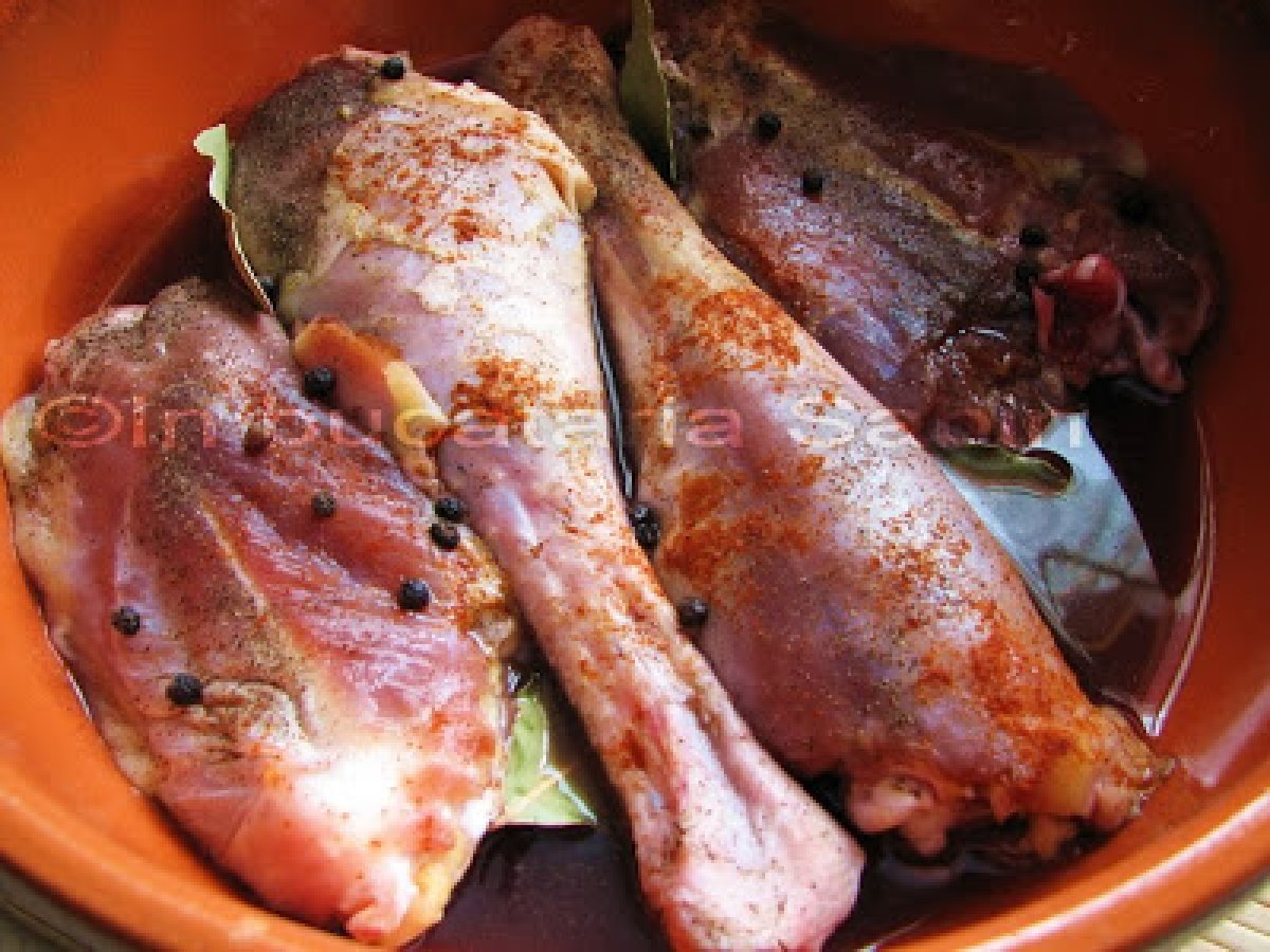 Friptura de curcan in sos de vin rosu PrecedentulUrmătorul Felul principalFoarte ușor40 min Trimite unui prieten Printează pagina Adresează o întrebare autorului Postează o poză cu rețeta gătită de tine Ingrediente 4 2 copane curcan (de preferat de tara) 250 ml vin rosu 2-3 foi de dafin cateva boabe piper 2 linguri de amidon sare, piper si boia iute pentru garnitura: ciuperci proaspete si sos de soia patrunjel