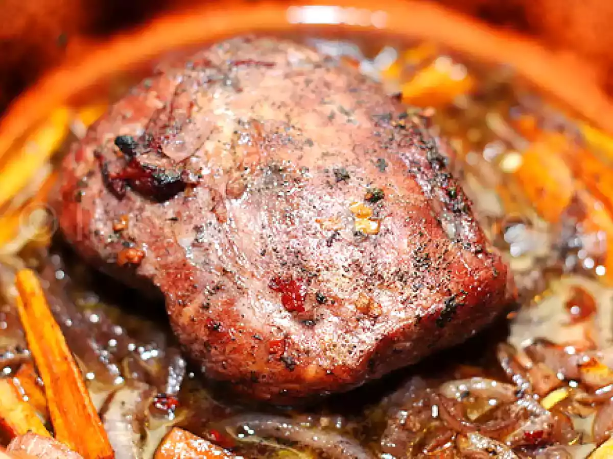 Friptura de porc cu sos de vin rosu PrecedentulUrmătorul Felul principalFoarte ușor45 min Trimite unui prieten Printează pagina Adresează o întrebare autorului Postează o poză cu rețeta gătită de tine Ingrediente 4 500 grame pupla de porc 300 ml vin rosu dulce 1 catel de usturoi 3 morcovi 1 ceapa 2 linguri ulei de masline 2 foi de dafin cimbru ardei iute uscat sare si piper