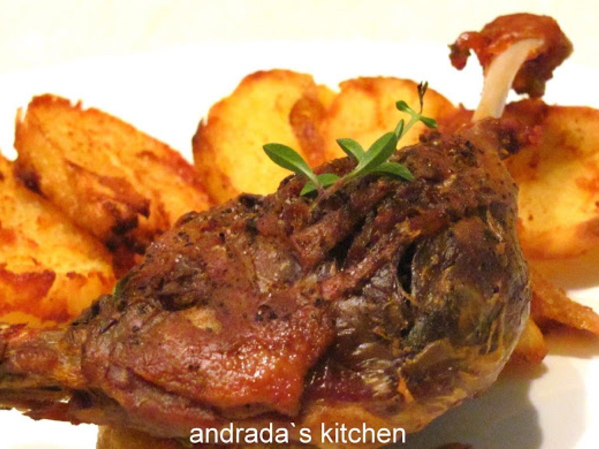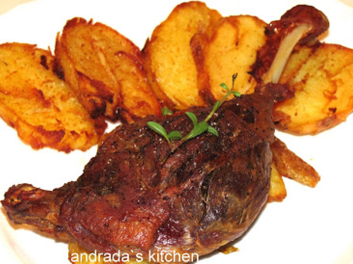 Friptura de pulpe de rata - cuisses de canard confites PrecedentulUrmătorul Felul principalFoarte ușor30 min Trimite unui prieten Printează pagina Adresează o întrebare autorului Postează o poză cu rețeta gătită de tine Ingrediente 3 2 pulpe rata 1/2 kg untura de rata 2 foi de dafin 1 crenguta cimbru cateva boabe piper sare piper alb 5-6 cartofi medii